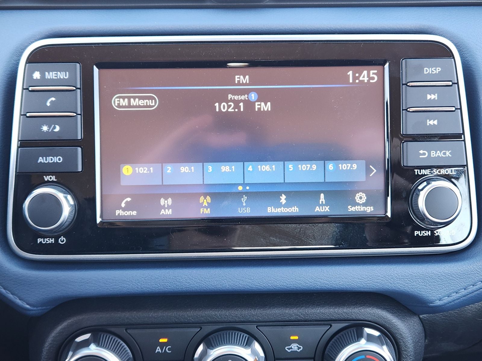 - Radio: AM/FM Audio System -inc: RDS, MP3, aux-in, 7" Advanced Drive-Assist Display, NissanConnect featuring Apple CarPlay and Android Auto, Bluetooth® hands-free phone system, streaming audio via Bluetooth®, interface for iPod and other compatible devices, hands-free text messaging assistant, Siri Eyes Free/Google Assistant voice recognition, 4 speakers and 3 USB ports (2-charge only)
