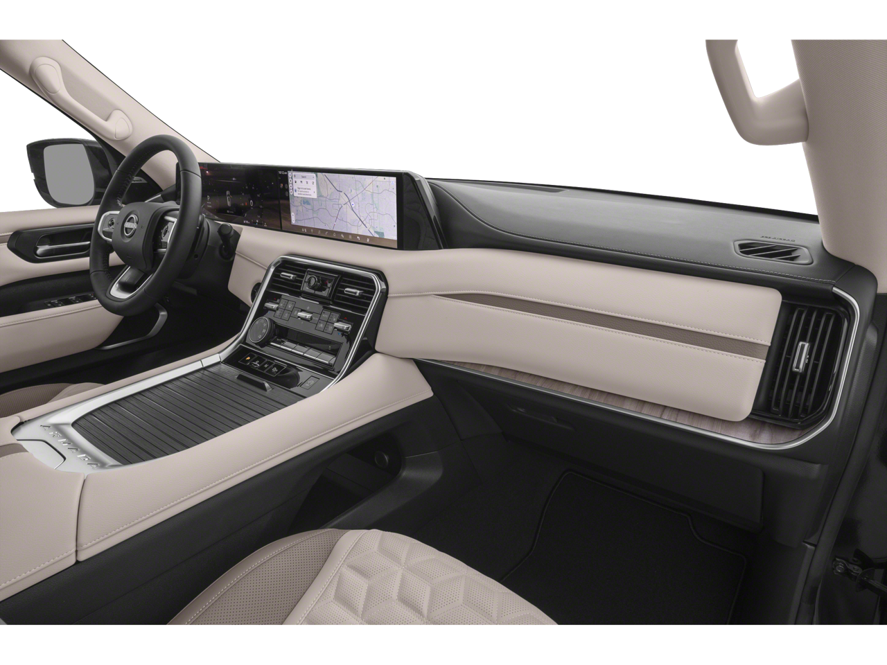 This 2026 Nissan Armada Platinum in Aspen White Tricoat comes with the following features: ProPILOT Assist 2.1 (Heads-Up Display), Split Bench Seat Package (2nd-Row Split Bench Seat w/40/20/40-Split Folding, Center Armrest with Two Cupholders, and EZ Flex Second Row Seating System with One Touch Release), 12 Speakers, 3rd row seats: split-bench, 4-Wheel Disc Brakes, ABS brakes, Air Conditioning, Alloy wheels, AM/FM radio: SiriusXM w/360L, Anti-whiplash front head restraints, Apple CarPlay/Android Auto, Auto High-beam Headlights, Auto tilt-away steering wheel, Auto-dimming door mirrors, Auto-dimming Rear-View mirror, Auto-leveling suspension, Automatic temperature control, Brake assist, Bumpers: body-color, Carpeted Floor Mats with Bench Seat, Climate Controlled Heated and Ventilated Front Seats, Compass, Cross Bars, Delay-off headlights, Driver door bin, Driver vanity mirror, Dual front impact airbags, Dual front side impact airbags, Electronic Stability Control, Emergency communication system: NissanConnect Services, Four wheel independent suspension, Front anti-roll bar, Front Bucket Seats, Front Center Armrest, Front dual zone A/C, Front fog lights, Front reading lights, Fully automatic headlights, Garage door transmitter: HomeLink, Genuine wood dashboard insert, Heated door mirrors, Heated front seats, Heated rear seats, Heated steering wheel, HVAC memory, Illuminated entry, Knee airbag, Leather steering wheel, Low tire pressure warning, Memory seat, Navigation system: Google Maps, Occupant sensing airbag, Outside temperature display, Overhead airbag, Overhead console, Panic alarm, Passenger door bin, Passenger vanity mirror, Power door mirrors, Power driver seat, Power Liftgate, Power moonroof, Power passenger seat, Power steering, Power windows, Premium Paint, Quilted Leather Seat Trim, Radio: NissanConnect with SiriusXM 360L, Rain sensing wipers, Rear air conditioning, Rear anti-roll bar, Rear Bumper Protector, Rear reading lights, Rear window defroster, Rear window wiper, Reclining 3rd row seat, Remote keyless entry, Security system, Speed control, Speed-sensing steering, Speed-Sensitive Wipers, Splash Guards, Split folding rear seat, Spoiler, Steering wheel memory, Steering wheel mounted audio controls, Tachometer, Telescoping steering wheel, Tilt steering wheel, Traction control, Trip computer, Turn signal indicator mirrors, Variably intermittent wipers, Ventilated front seats, Voltmeter, and Wheels: 20 x 8.5J Machined and Painted Alloy.