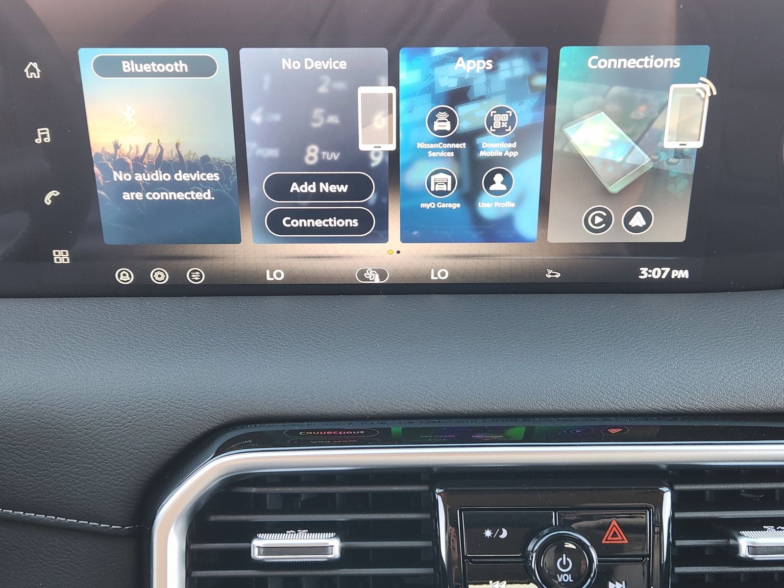 - Radio: NissanConnect w/SiriusXM 360L -inc: 6 speakers w/advanced audio features, 12.3" center touch-screen display, wireless Apple CarPlay and Android Auto, Bluetooth® hands-free phone system, Siri Eyes Free, hybrid radio, 5G capability, 2 USB type-C connection ports in front, Amazon Alexa w/Hotword, voice recognition and system controlled navigation w/traffic information
