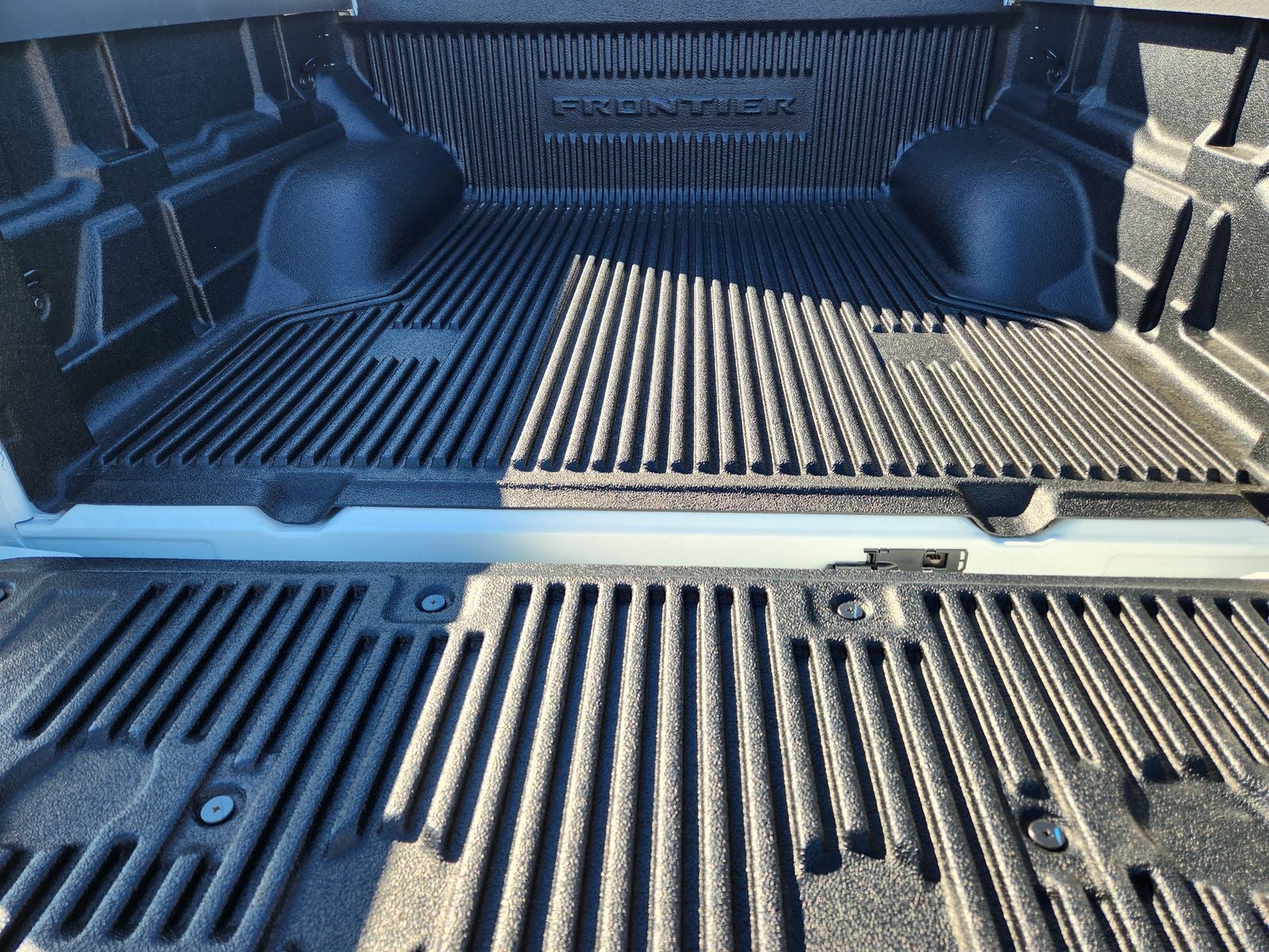 This 2026 Nissan Frontier SV in Glacier White comes with the following features: Tow Package, Auto High-beam Headlights, Blind Spot Warning, Drop-In Bed Liner & Bumper Step, Front Bucket Seats, Power driver seat, Premium Cloth Seat Trim, Radio: SXM/AM/FM/AUX/USB Audio System, Remote Engine Start, Speed control, Steering wheel mounted audio controls, Telescoping steering wheel, Tilt steering wheel, Wireless Apple CarPlay/Wireless Android Auto, 17 Alloy Wheels, 17 Machined & Painted Alloy Wheels, 3.692 Axle Ratio, 4-Wheel Disc Brakes, 6 Speakers, ABS brakes, Air Conditioning, Alloy wheels, AM/FM radio: SiriusXM, Anti-whiplash front head restraints, Brake assist, Bumpers: body-color, Carpeted Floor Mats, Delay-off headlights, Driver door bin, Driver vanity mirror, Dual front impact airbags, Dual front side impact airbags, Electronic Stability Control, Emergency communication system, Front anti-roll bar, Front Center Armrest, Front reading lights, Front wheel independent suspension, Fully automatic headlights, Illuminated entry, Knee airbag, Low tire pressure warning, Occupant sensing airbag, Overhead airbag, Overhead console, Panic alarm, Passenger door bin, Passenger vanity mirror, Power door mirrors, Power steering, Power windows, Radio data system, Rear anti-roll bar, Rear seat center armrest, Rear side impact airbag, Rear step bumper, Remote keyless entry, Security system, Speed-sensing steering, Splash Guards, Split folding rear seat, Tachometer, Tow/Haul Mode Switch, Traction control, Trip computer, Variably intermittent wipers, and Voltmeter.