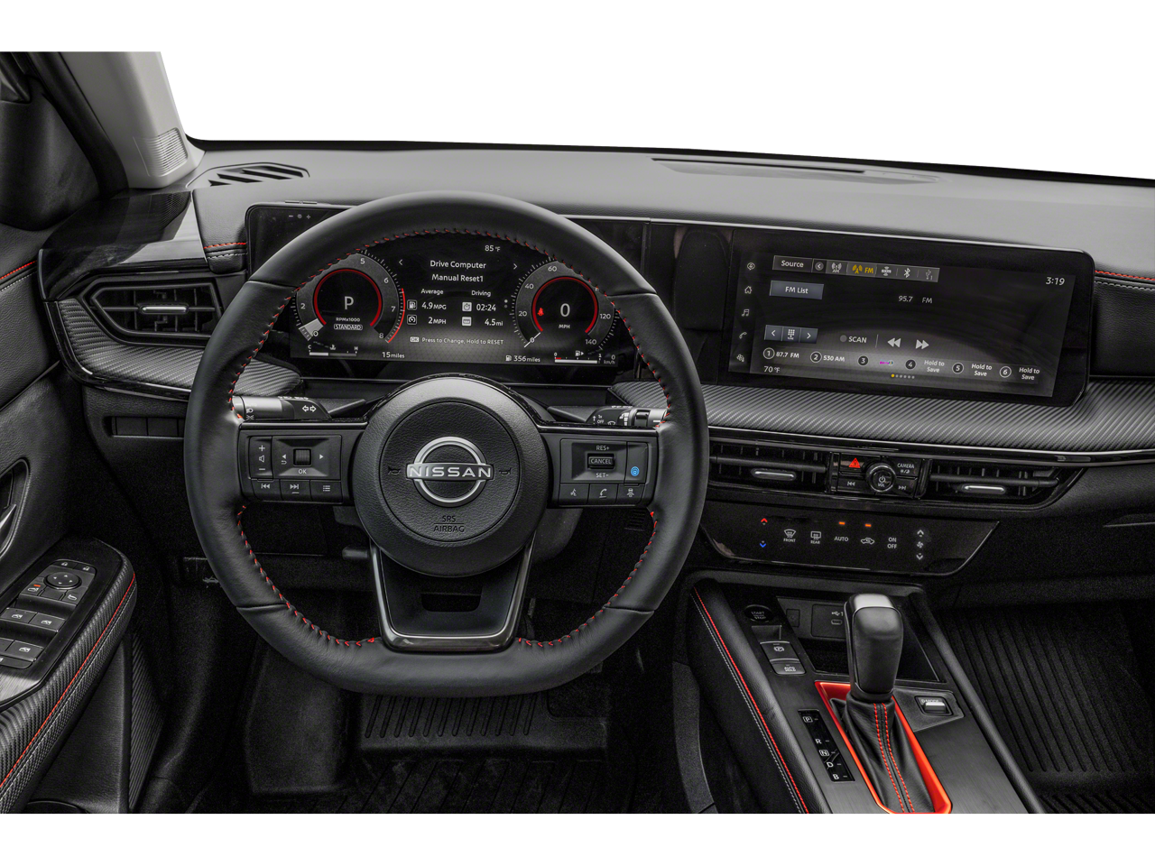 - Radio: AM/FM/SiriusXM Audio System -inc: 12.3" color touchscreen display w/6 speakers, Bluetooth hands-free phone system, streaming audio via Bluetooth, NissanConnect Services powered by SiriusXM featuring wireless Apple CarPlay, wireless Android Auto, Siri eyes free and hands-free text messaging assistant, audio and Bluetooth steering wheel switches and Wi-Fi hotspot
