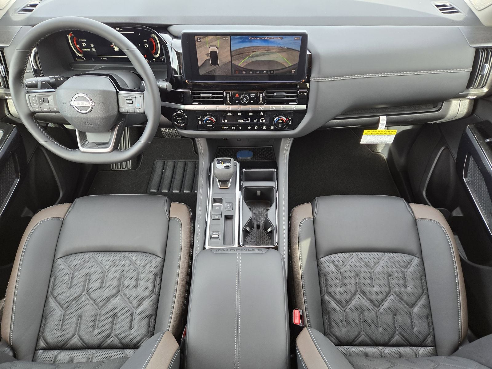This 2026 Nissan Pathfinder Platinum in Gun Metallic comes with the following features: Cargo Package (Cargo Area Protector, Cargo Net, and First Aid), 13 Speakers, 3rd row seats: bench, 4-Piece Black Splash Guards, 4-Wheel Disc Brakes, ABS brakes, Air Conditioning, Alloy wheels, AM/FM radio: SiriusXM w/360L, Auto High-beam Headlights, Auto tilt-away steering wheel, Auto-dimming Rear-View mirror, Automatic temperature control, Bench Seat Carpeted Floor Mats, Bodyside moldings, Bose Premium Audio System, Brake assist, Bumpers: body-color, Climate Controlled Front Bucket Seats, Cross Bars, Delay-off headlights, Driver door bin, Driver vanity mirror, Dual front impact airbags, Dual front side impact airbags, Electronic Stability Control, Emergency communication system: NissanConnect Services, Four wheel independent suspension, Front anti-roll bar, Front Bucket Seats, Front Center Armrest, Front dual zone A/C, Front reading lights, Fully automatic headlights, Garage door transmitter: HomeLink, Heads-Up Display, Heated door mirrors, Heated front seats, Heated rear seats, Heated steering wheel, Illuminated entry, Knee airbag, Low tire pressure warning, Memory seat, Navigation System, NissanConnect featuring Apple CarPlay and Android Auto, Occupant sensing airbag, Outside temperature display, Overhead airbag, Overhead console, Panic alarm, Passenger door bin, Passenger vanity mirror, Power door mirrors, Power driver seat, Power Liftgate, Power moonroof, Power passenger seat, Power steering, Power windows, Radio data system, Radio: AM/FM Audio System with NissanConnect, Rain sensing wipers, Rear air conditioning, Rear anti-roll bar, Rear reading lights, Rear seat center armrest, Rear side impact airbag, Rear window defroster, Rear window wiper, Reclining 3rd row seat, Remote keyless entry, Security system, Semi-Aniline Leather-Appointed Seating Surfaces, Speed control, Speed-sensing steering, Speed-Sensitive Wipers, Split folding rear seat, Spoiler, Steering wheel memory, Steering wheel mounted audio controls, Tachometer, Telescoping steering wheel, Tilt steering wheel, Traction control, Trip computer, Turn signal indicator mirrors, Variably intermittent wipers, Ventilated front seats, and Wheels: 20 Machined Alloy. 20/27 City/Highway MPG