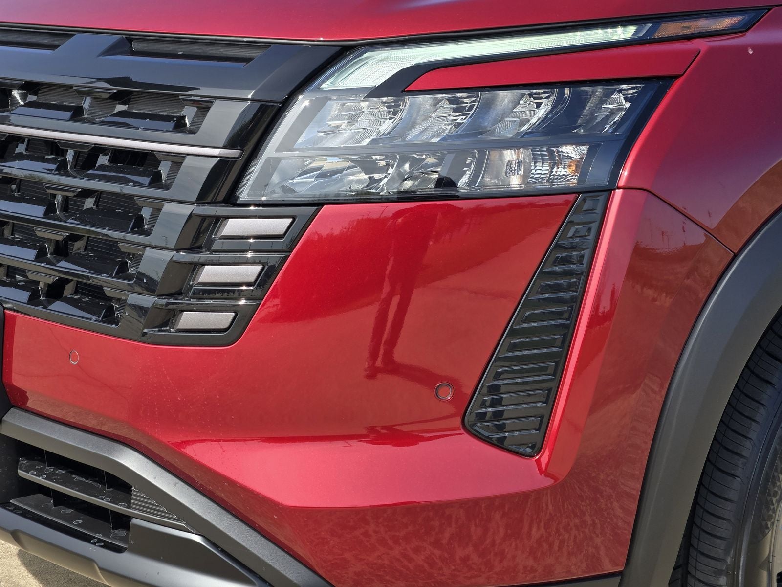 This 2026 Nissan Pathfinder SV in Scarlet Ember Tintcoat comes with the following features: 18 Painted Alloy Wheels, 3rd row seats: bench, 4-Piece Black Splash Guards, 4-Wheel Disc Brakes, 6 Speakers, ABS brakes, Air Conditioning, Alloy wheels, AM/FM radio: SiriusXM w/360L, Auto High-beam Headlights, Automatic temperature control, Bench Seat Carpeted Floor Mats, Brake assist, Bumpers: body-color, Cloth Seating Surfaces, Cross Bars, Delay-off headlights, Driver door bin, Driver vanity mirror, Dual front impact airbags, Dual front side impact airbags, Electronic Stability Control, Emergency communication system: NissanConnect Services, Four wheel independent suspension, Front anti-roll bar, Front Bucket Seats, Front Center Armrest, Front dual zone A/C, Front reading lights, Fully automatic headlights, Garage door transmitter: myQ Connected Garage, Heated door mirrors, Heated Front Bucket Seats, Heated front seats, Illuminated entry, Knee airbag, Low tire pressure warning, NissanConnect featuring Apple CarPlay and Android Auto, Occupant sensing airbag, Outside temperature display, Overhead airbag, Overhead console, Panic alarm, Passenger door bin, Passenger vanity mirror, Power door mirrors, Power driver seat, Power Liftgate, Power steering, Power windows, Premium Paint, Radio data system, Radio: AM/FM Audio System with NissanConnect, Rear air conditioning, Rear anti-roll bar, Rear reading lights, Rear seat center armrest, Rear side impact airbag, Rear window defroster, Rear window wiper, Reclining 3rd row seat, Remote keyless entry, Security system, Speed control, Speed-sensing steering, Split folding rear seat, Spoiler, Steering wheel mounted audio controls, Tachometer, Telescoping steering wheel, Tilt steering wheel, Traction control, Trip computer, and Variably intermittent wipers. 21/27 City/Highway MPG