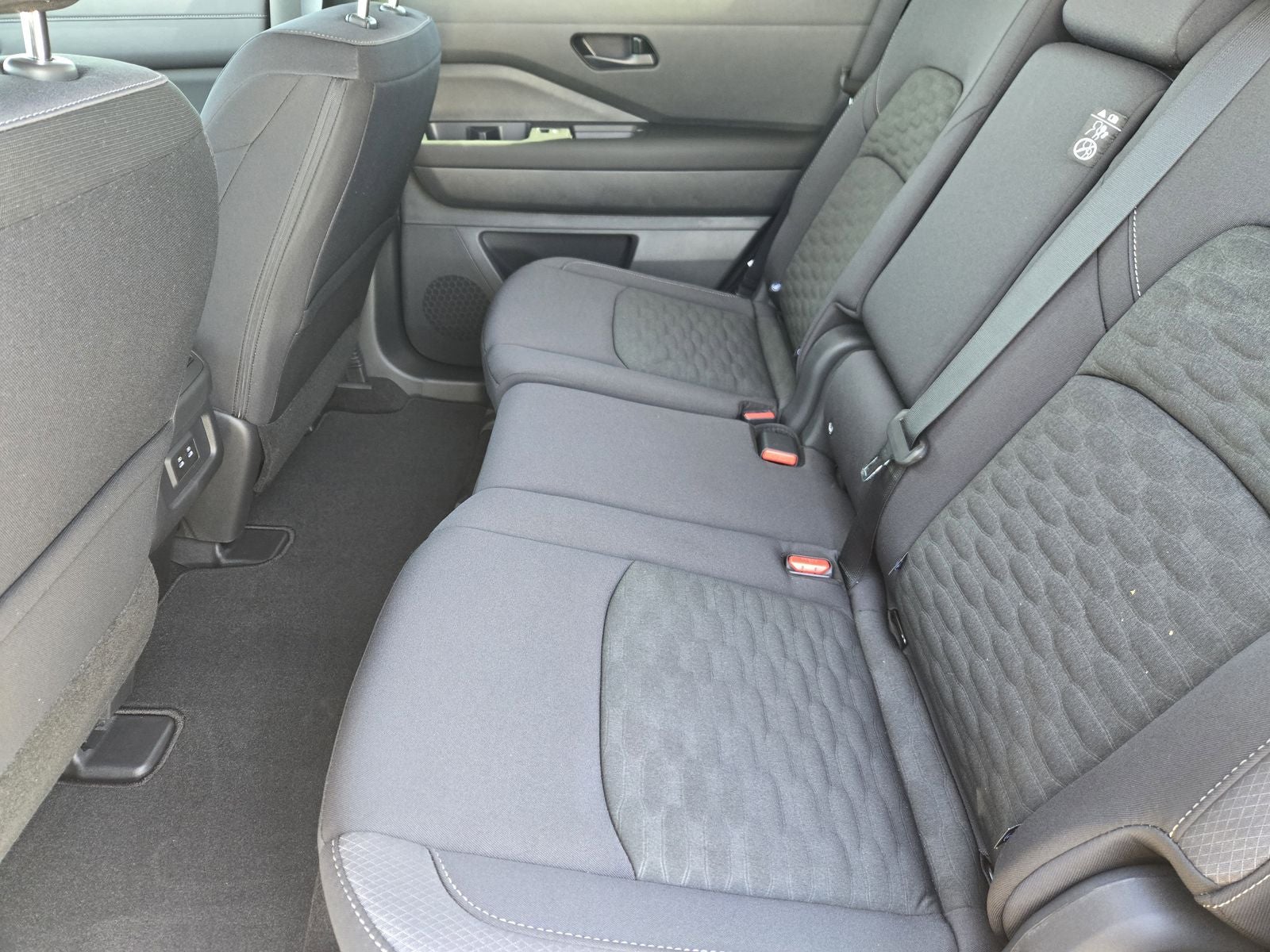 This 2026 Nissan Pathfinder SV in Gun Metallic comes with the following features: 18 Painted Alloy Wheels, 3rd row seats: bench, 4-Piece Black Splash Guards, 4-Wheel Disc Brakes, 6 Speakers, ABS brakes, Air Conditioning, Alloy wheels, AM/FM radio: SiriusXM w/360L, Auto High-beam Headlights, Automatic temperature control, Bench Seat Carpeted Floor Mats, Brake assist, Bumpers: body-color, Cloth Seating Surfaces, Cross Bars, Delay-off headlights, Driver door bin, Driver vanity mirror, Dual front impact airbags, Dual front side impact airbags, Electronic Stability Control, Emergency communication system: NissanConnect Services, Four wheel independent suspension, Front anti-roll bar, Front Bucket Seats, Front Center Armrest, Front dual zone A/C, Front reading lights, Fully automatic headlights, Garage door transmitter: myQ Connected Garage, Heated door mirrors, Heated Front Bucket Seats, Heated front seats, Illuminated entry, Knee airbag, Low tire pressure warning, NissanConnect featuring Apple CarPlay and Android Auto, Occupant sensing airbag, Outside temperature display, Overhead airbag, Overhead console, Panic alarm, Passenger door bin, Passenger vanity mirror, Power door mirrors, Power driver seat, Power Liftgate, Power steering, Power windows, Radio data system, Radio: AM/FM Audio System with NissanConnect, Rear air conditioning, Rear anti-roll bar, Rear reading lights, Rear seat center armrest, Rear side impact airbag, Rear window defroster, Rear window wiper, Reclining 3rd row seat, Remote keyless entry, Security system, Speed control, Speed-sensing steering, Split folding rear seat, Spoiler, Steering wheel mounted audio controls, Tachometer, Telescoping steering wheel, Tilt steering wheel, Traction control, Trip computer, and Variably intermittent wipers. 21/27 City/Highway MPG