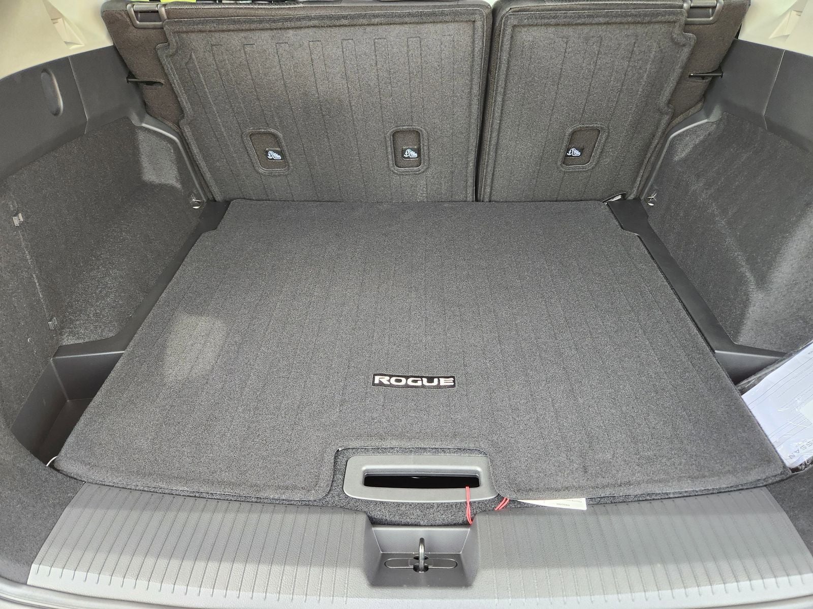 This 2026 Nissan Rogue SV in Deep Ocean Blue Pearl comes with the following features: 4-Wheel Disc Brakes, 6 Speakers, ABS brakes, Air Conditioning, Alloy wheels, AM/FM radio: Sirius, Apple CarPlay/Android Auto, Auto High-beam Headlights, Automatic temperature control, Black Splash Guards (Set of 4) (B92), Brake assist, Bumpers: body-color, Chrome Rear Bumper Protector, Delay-off headlights, Driver door bin, Driver vanity mirror, Dual front impact airbags, Dual front side impact airbags, Electronic Stability Control, Emergency communication system: NissanConnect Services, First Aid Kit, Floor Mats w/1-Piece Cargo Area Protector, Four wheel independent suspension, Front anti-roll bar, Front Bucket Seats, Front Center Armrest, Front dual zone A/C, Front reading lights, Fully automatic headlights, Heated door mirrors, Illuminated entry, Knee airbag, Low tire pressure warning, Occupant sensing airbag, Outside temperature display, Overhead airbag, Overhead console, Panic alarm, Passenger door bin, Passenger vanity mirror, Power door mirrors, Power driver seat, Power Liftgate, Power steering, Power windows, Prima-Tex Leatherette Seat Trim, Radio data system, Radio: AM/FM NissanConnect, Rear anti-roll bar, Rear seat center armrest, Rear side impact airbag, Rear window defroster, Rear window wiper, Remote keyless entry, Speed control, Speed-sensing steering, Speed-Sensitive Wipers, Split folding rear seat, Spoiler, Steering wheel mounted audio controls, Tachometer, Telescoping steering wheel, Tilt steering wheel, Traction control, Trip computer, and Variably intermittent wipers. 29/36 City/Highway MPG