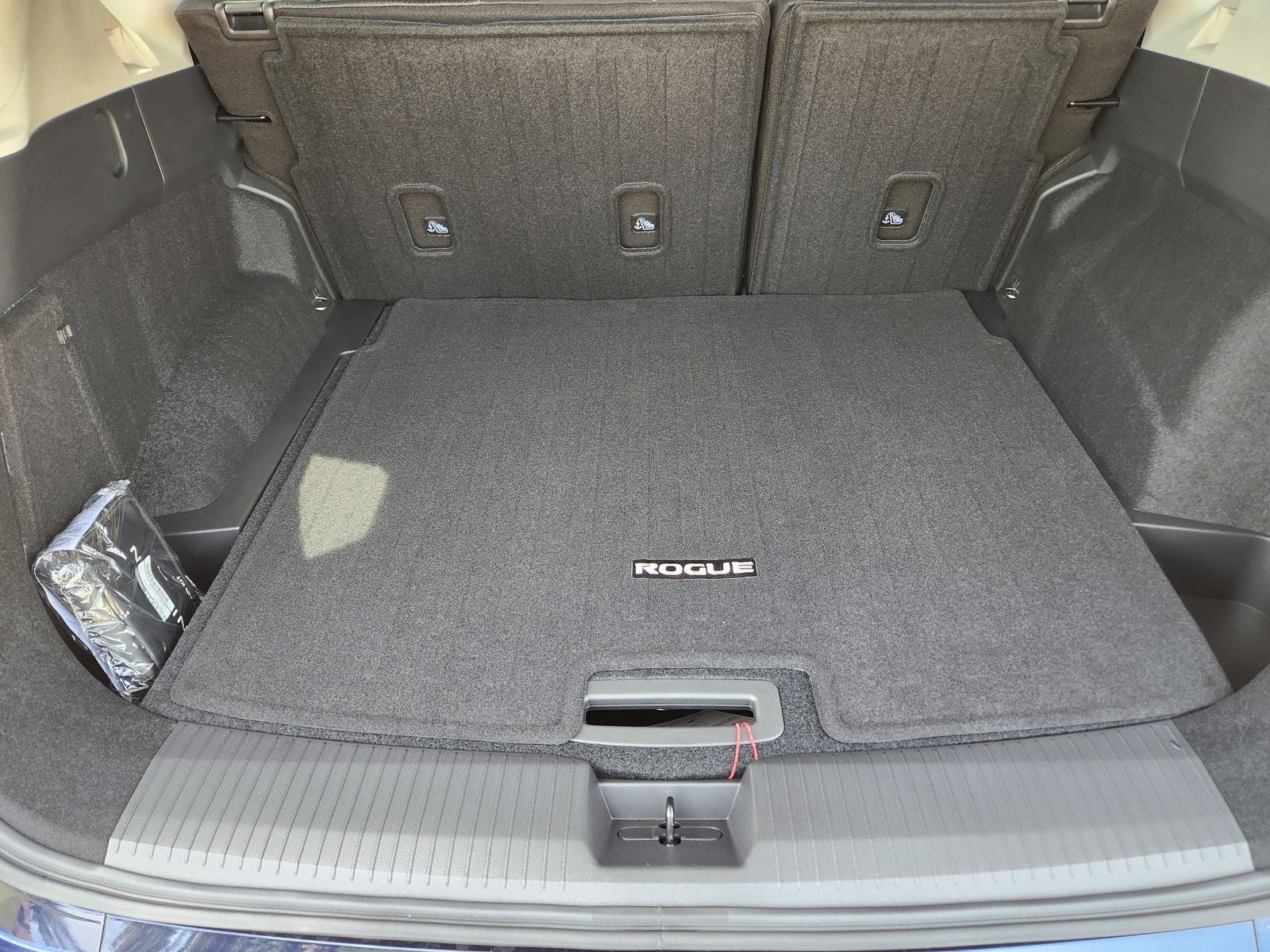 This 2026 Nissan Rogue SV in Deep Ocean Blue Pearl comes with the following features: 4-Wheel Disc Brakes, 6 Speakers, ABS brakes, Air Conditioning, Alloy wheels, AM/FM radio: Sirius, Apple CarPlay/Android Auto, Auto High-beam Headlights, Automatic temperature control, Black Splash Guards (Set of 4) (B92), Brake assist, Bumpers: body-color, Chrome Rear Bumper Protector, Delay-off headlights, Driver door bin, Driver vanity mirror, Dual front impact airbags, Dual front side impact airbags, Electronic Stability Control, Emergency communication system: NissanConnect Services, First Aid Kit, Floor Mats w/1-Piece Cargo Area Protector, Four wheel independent suspension, Front anti-roll bar, Front Bucket Seats, Front Center Armrest, Front dual zone A/C, Front reading lights, Fully automatic headlights, Heated door mirrors, Illuminated entry, Knee airbag, Low tire pressure warning, Occupant sensing airbag, Outside temperature display, Overhead airbag, Overhead console, Panic alarm, Passenger door bin, Passenger vanity mirror, Power door mirrors, Power driver seat, Power Liftgate, Power steering, Power windows, Prima-Tex Leatherette Seat Trim, Radio data system, Radio: AM/FM NissanConnect, Rear anti-roll bar, Rear seat center armrest, Rear side impact airbag, Rear window defroster, Rear window wiper, Remote keyless entry, Speed control, Speed-sensing steering, Speed-Sensitive Wipers, Split folding rear seat, Spoiler, Steering wheel mounted audio controls, Tachometer, Telescoping steering wheel, Tilt steering wheel, Traction control, Trip computer, and Variably intermittent wipers. 29/36 City/Highway MPG