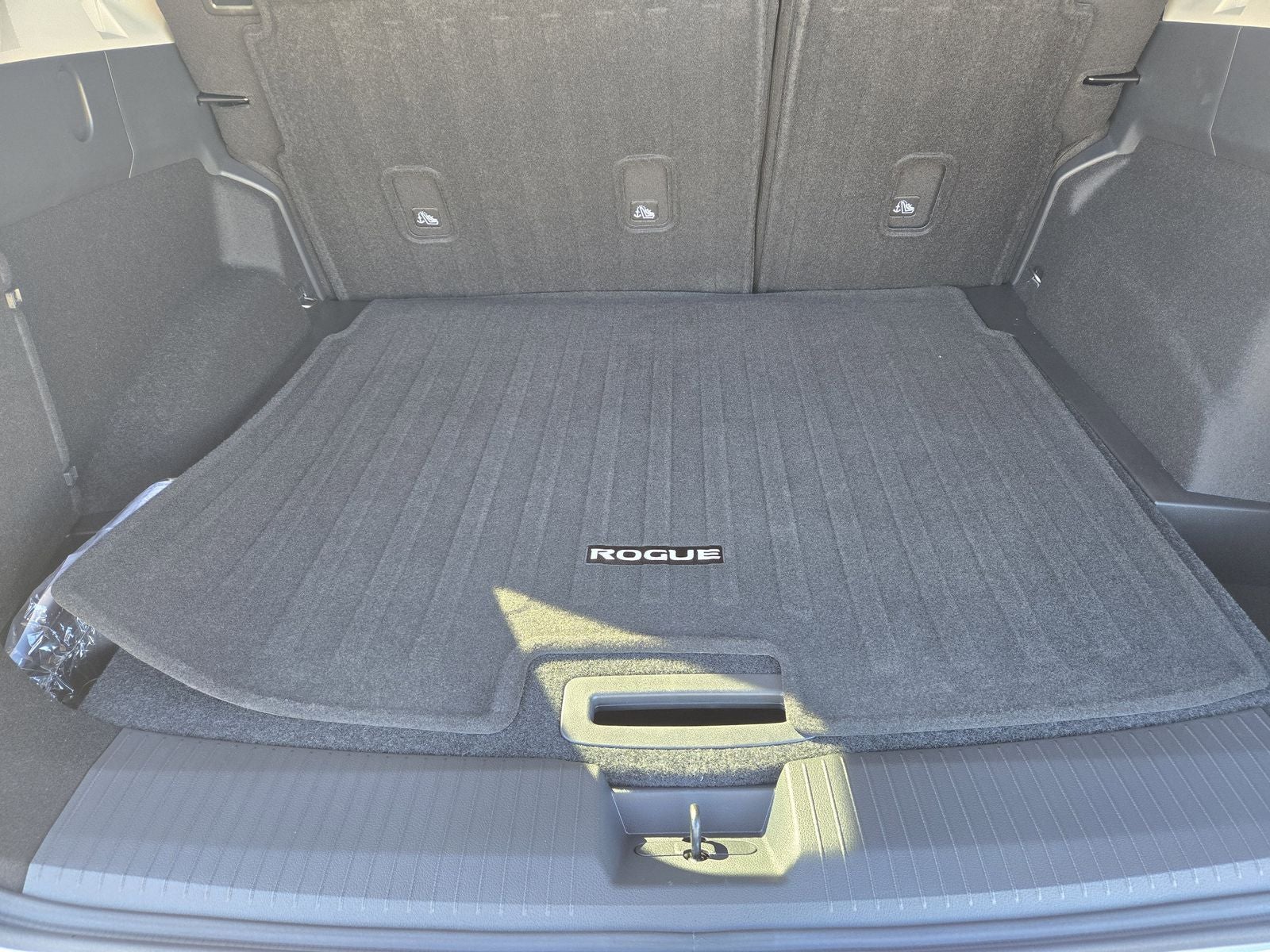 This 2026 Nissan Rogue SV in Everest White Pearl Tricoat comes with the following features: Cold Weather Package, 4-Wheel Disc Brakes, 6 Speakers, ABS brakes, Air Conditioning, Alloy wheels, AM/FM radio, Apple CarPlay/Android Auto, Auto High-beam Headlights, Automatic temperature control, Brake assist, Bumpers: body-color, Chrome Rear Bumper Protector, Cloth Seat Trim with Patterned Inserts, Delay-off headlights, Driver door bin, Driver vanity mirror, Dual front impact airbags, Dual front side impact airbags, Electronic Stability Control, Emergency communication system: NissanConnect Services, Four wheel independent suspension, Front anti-roll bar, Front Bucket Seats, Front Center Armrest, Front dual zone A/C, Front reading lights, Fully automatic headlights, Heated door mirrors, Illuminated entry, Knee airbag, Low tire pressure warning, Occupant sensing airbag, Outside temperature display, Overhead airbag, Overhead console, Panic alarm, Passenger door bin, Passenger vanity mirror, Power door mirrors, Power driver seat, Power Liftgate, Power steering, Power windows, Premium Paint, Radio data system, Radio: AM/FM NissanConnect, Rear anti-roll bar, Rear seat center armrest, Rear side impact airbag, Rear window defroster, Rear window wiper, Remote keyless entry, Speed control, Speed-sensing steering, Speed-Sensitive Wipers, Split folding rear seat, Spoiler, Steering wheel mounted audio controls, Tachometer, Telescoping steering wheel, Tilt steering wheel, Traction control, Trip computer, Variably intermittent wipers, and Wheels: 18 Dark Painted Alloy. 29/36 City/Highway MPG