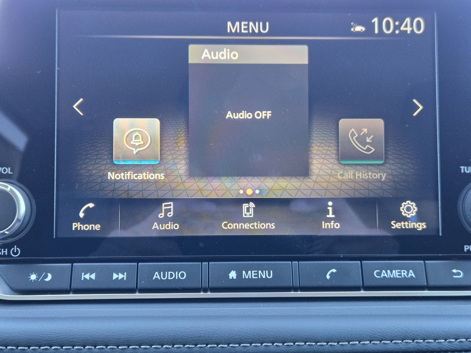 - Radio: AM/FM NissanConnect -inc: 6 speakers plus 2 tweeters, Apple CarPlay, Android Auto, 8" color touch screen display, Bluetooth®, 2 front USB type-C, Wi-Fi hotspot and NissanConnect Services powered by SiriusXM