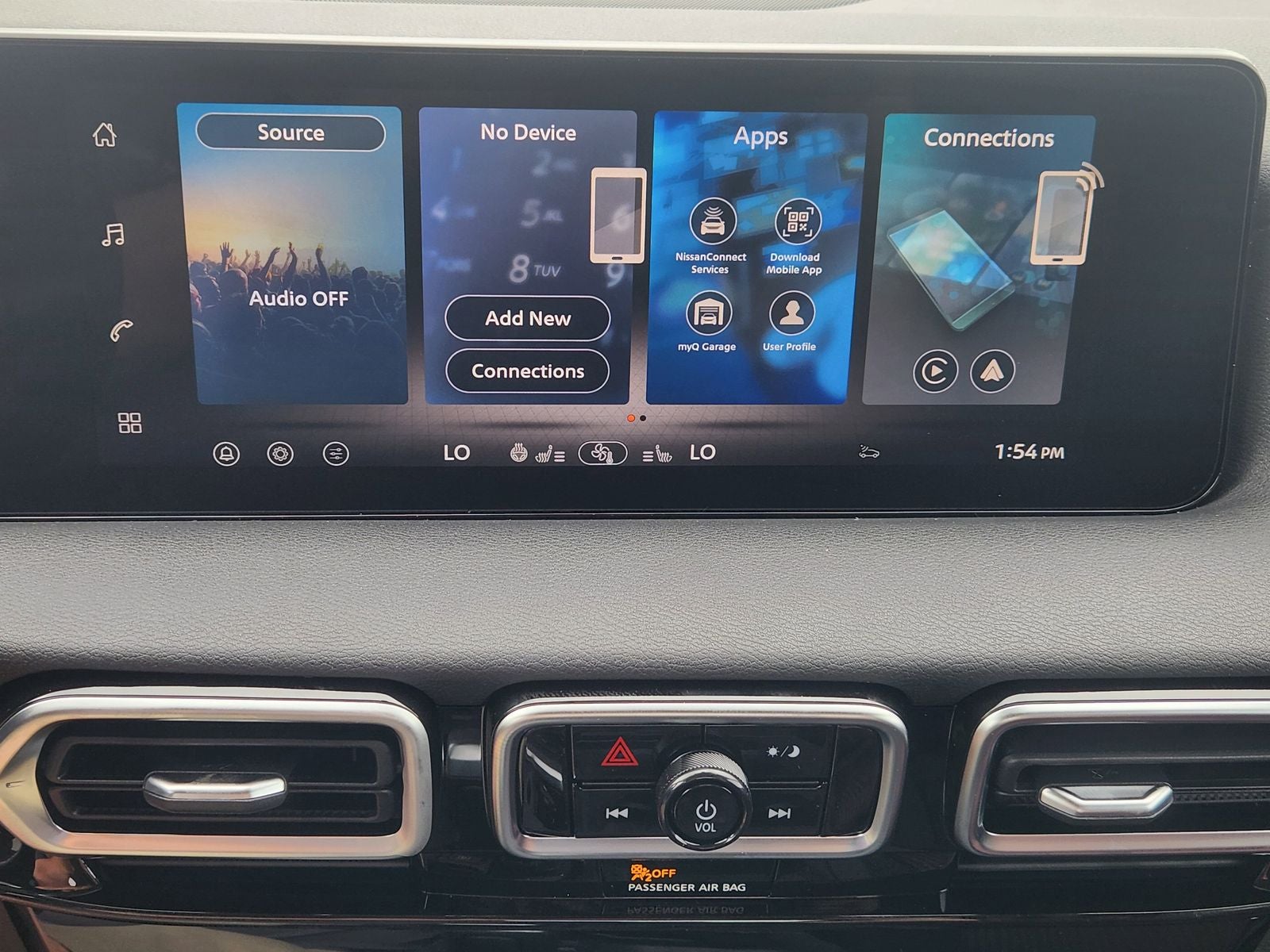 - Radio: AM/FM w/RDS/MP3 -inc: 6 speakers, 12.3" NissanConnect multimedia center display, Bluetooth® hands-free phone system, streaming audio via Bluetooth®, hands-free text messaging assistant, Siri Eyes Free, Google Assistant voice recognition, wireless Apple CarPlay and Android Auto and (2) front USB connection port (type C)