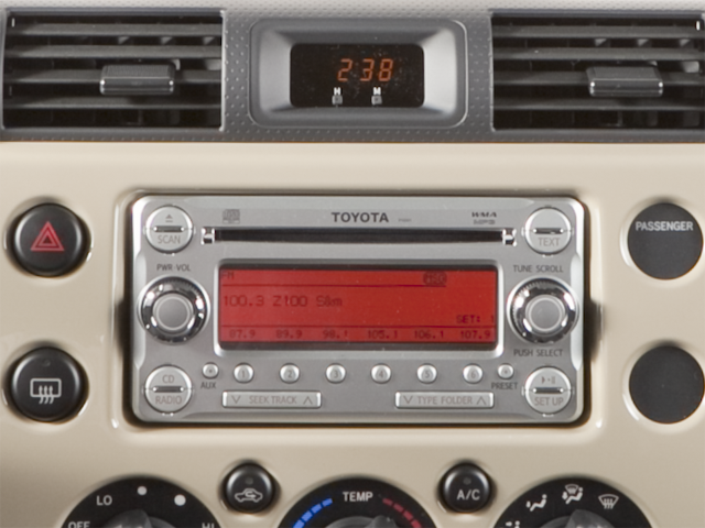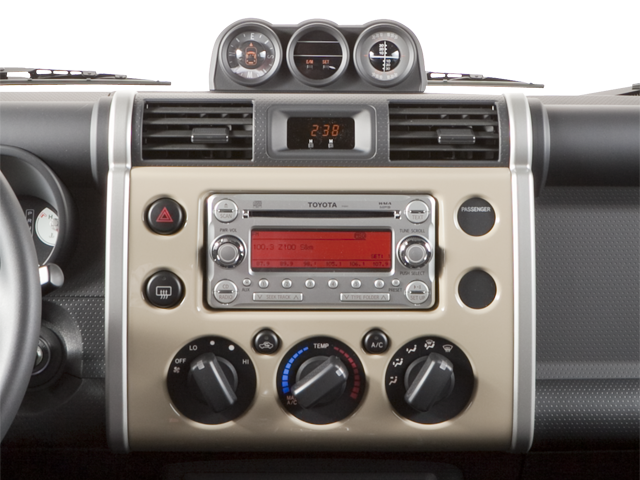 This 2010 Toyota FJ Cruiser comes nicely equipped with 4WD, 17 x 7.5 Steel Wheels, 4-Wheel Disc Brakes, 6 Speakers, ABS brakes, Air Conditioning, AM/FM radio, AM/FM/CD Audio System w/6-Speakers, Anti-whiplash front head restraints, Brake assist, CD player, Driver door bin, Driver vanity mirror, Driver's Seat Mounted Armrest, Dual front impact airbags, Dual front side impact airbags, Electronic Stability Control, Fabric Seat Trim, Front anti-roll bar, Front Bucket Seats, Front reading lights, Front wheel independent suspension, Illuminated entry, Locking Rear Differential, Low tire pressure warning, Occupant sensing airbag, Overhead airbag, Passenger door bin, Passenger vanity mirror, Power steering, Power windows, Rear anti-roll bar, Rear window defroster, Speed-sensing steering, Split folding rear seat, Tachometer, Tilt steering wheel, Traction control, Variably intermittent wipers, and Voltmeter.