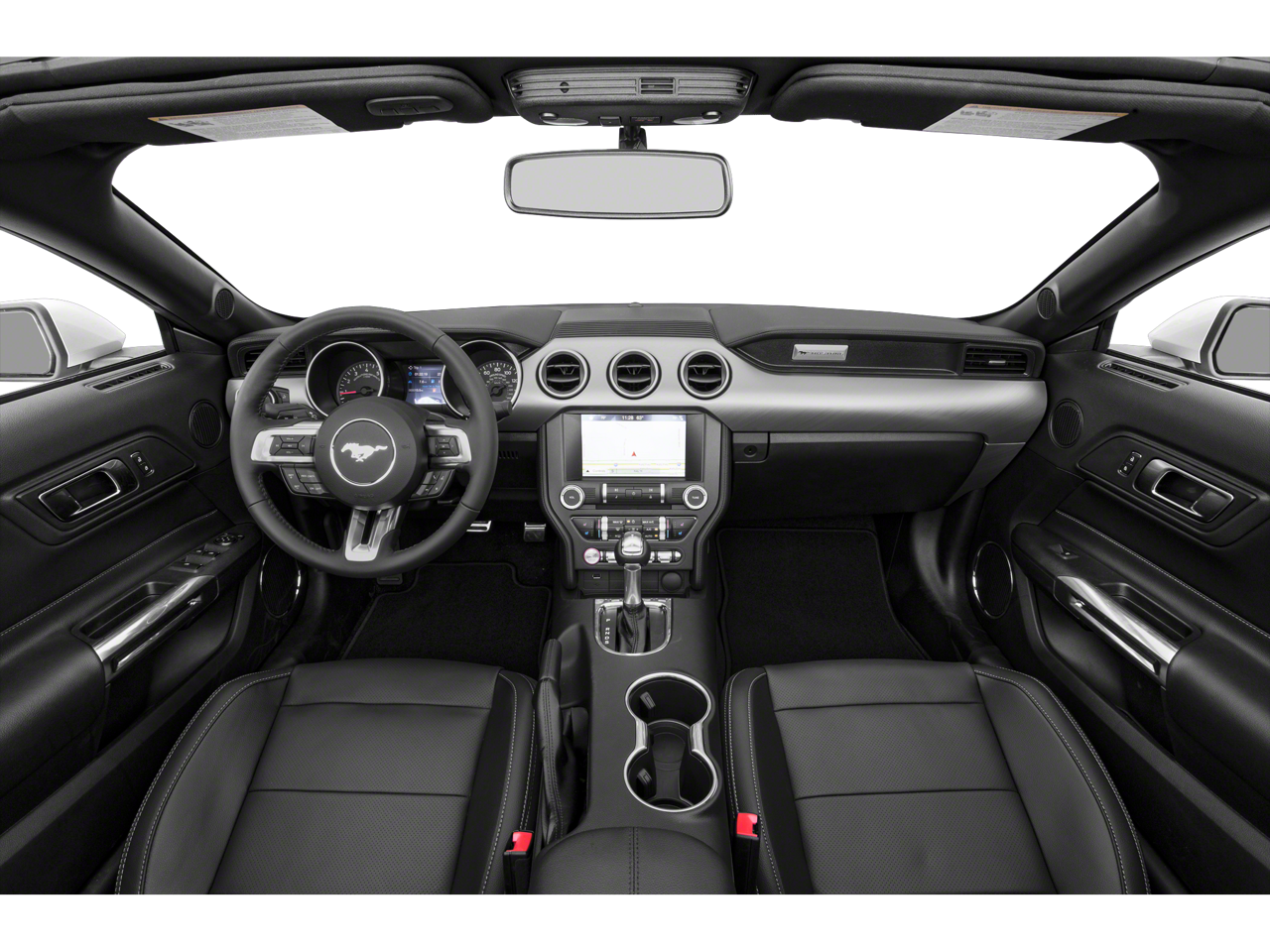 This 2019 Ford Mustang EcoBoost Premium in Ingot Silver Metallic comes with the following features: EcoBoost 2.3L I4 GTDi DOHC Turbocharged VCT 6-Speed Manual RWD Mustang EcoBoost Premium, 2D Convertible, EcoBoost 2.3L I4 GTDi DOHC Turbocharged VCT, 6-Speed Manual, RWD, Ingot Silver Metallic, Ebony w/Leather Bucket Seats, ABS brakes, Alloy wheels, Compass, Electronic Stability Control, Front dual zone A/C, Heated door mirrors, Heated front seats, Illuminated entry, Low tire pressure warning, Remote keyless entry, Traction control, 4-Wheel Disc Brakes, 9 Speakers, Air Conditioning, AM/FM radio: SiriusXM, AM/FM Stereo, AppLink/Apple CarPlay and Android Auto, Auto-dimming Rear-View mirror, Automatic temperature control, Brake assist, Bumpers: body-color, Climate Controlled Heated/Cooled Front Seats, Convertible roof lining, Delay-off headlights, Driver door bin, Driver vanity mirror, Dual front impact airbags, Dual front side impact airbags, Emergency communication system: 911 Assist, Exterior Parking Camera Rear, Four wheel independent suspension, Front anti-roll bar, Front Bucket Seats, Front Center Armrest, Front fog lights, Front reading lights, Fully automatic headlights, Garage door transmitter, Glass rear window, Knee airbag, Leather Bucket Seats, Leather Shift Knob, Occupant sensing airbag, Outside temperature display, Overhead console, Panic alarm, Passenger door bin, Passenger vanity mirror, Power convertible roof, Power door mirrors, Power driver seat, Power passenger seat, Power steering, Power windows, Radio data system, Rear anti-roll bar, Rear window defroster, Security system, SiriusXM Radio, Speed control, Speed-sensing steering, Speed-Sensitive Wipers, Spoiler, Steering wheel mounted audio controls, SYNC 3 Communications & Entertainment System, Tachometer, Telescoping steering wheel, Tilt steering wheel, Trip computer, Turn signal indicator mirrors, Variably intermittent wipers, Ventilated front seats, Voltmeter, and Wheels: 18 x 8 Machined-Face Aluminum.