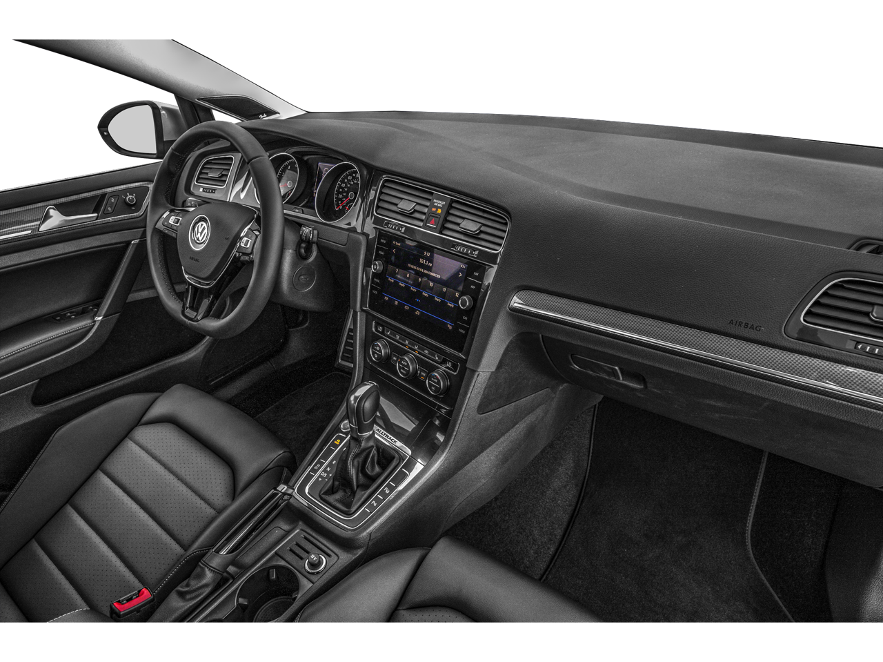This 2019 Volkswagen Golf Alltrack comes nicely equipped with 4-Wheel Disc Brakes, ABS brakes, Air Conditioning, Alloy wheels, Anti-whiplash front head restraints, Brake assist, Bumpers: body-color, Compass, Delay-off headlights, Driver door bin, Driver vanity mirror, Dual front impact airbags, Dual front side impact airbags, Electronic Stability Control, Exterior Parking Camera Rear, Forward collision: FCW w/Autonomous Emergency Braking mitigation, Four wheel independent suspension, Front anti-roll bar, Front Bucket Seats, Front Center Armrest, Front fog lights, Front reading lights, Fully automatic headlights, Heated door mirrors, Heated front seats, Illuminated entry, Leather Shift Knob, Low tire pressure warning, Occupant sensing airbag, Outside temperature display, Overhead airbag, Overhead console, Panic alarm, Passenger door bin, Passenger vanity mirror, Perforated V-Tex Leatherette Seating Surfaces, Power door mirrors, Power driver seat, Power passenger seat, Power steering, Power windows, Radio data system, Rain sensing wipers, Rear anti-roll bar, Rear reading lights, Rear seat center armrest, Rear window defroster, Rear window wiper, Remote keyless entry, Roof rack: rails only, Speed control, Speed-sensing steering, Speed-Sensitive Wipers, Split folding rear seat, Spoiler, Steering wheel mounted audio controls, Tachometer, Telescoping steering wheel, Tilt steering wheel, Traction control, Trip computer, Turn signal indicator mirrors, and Variably intermittent wipers.