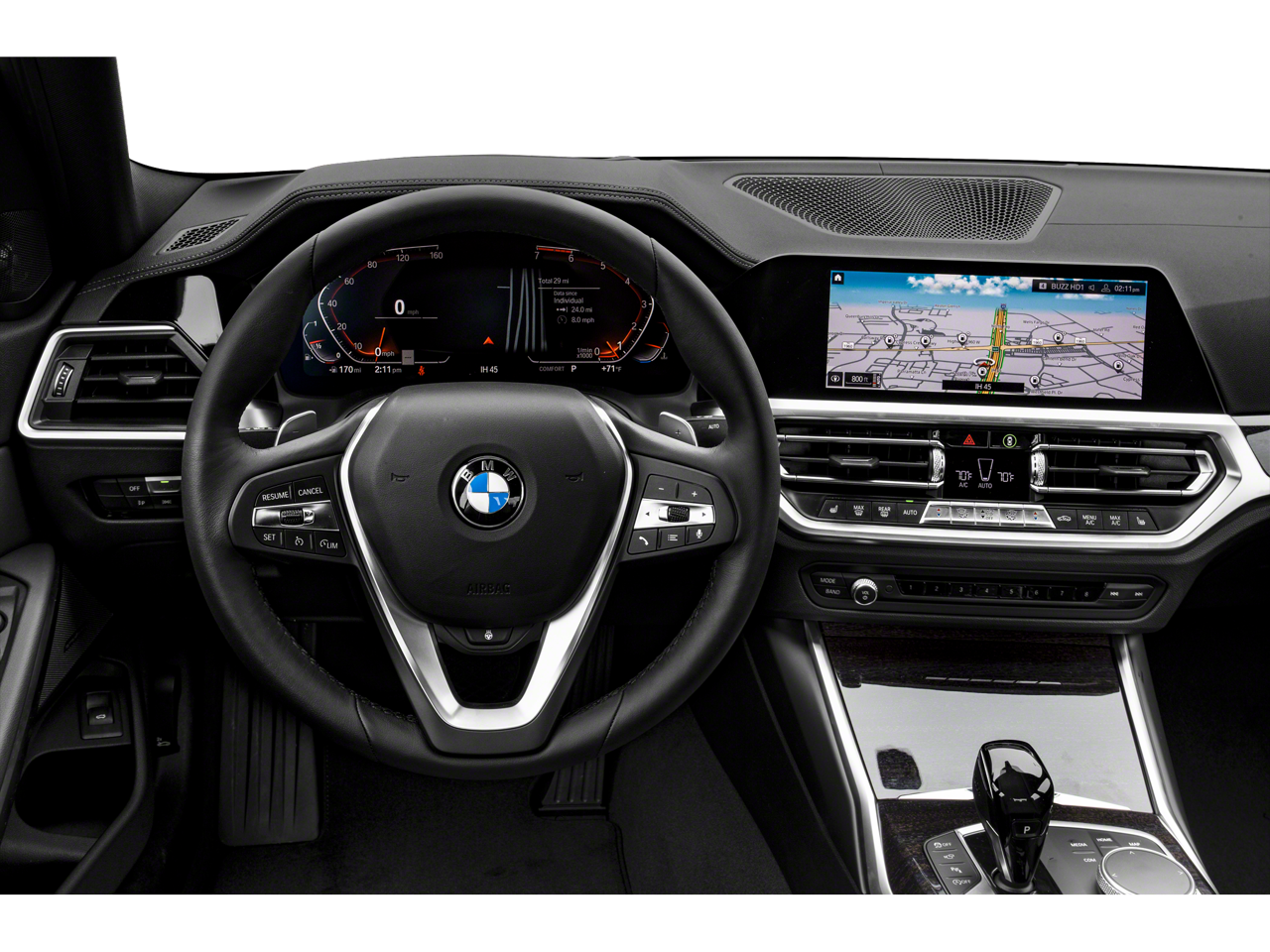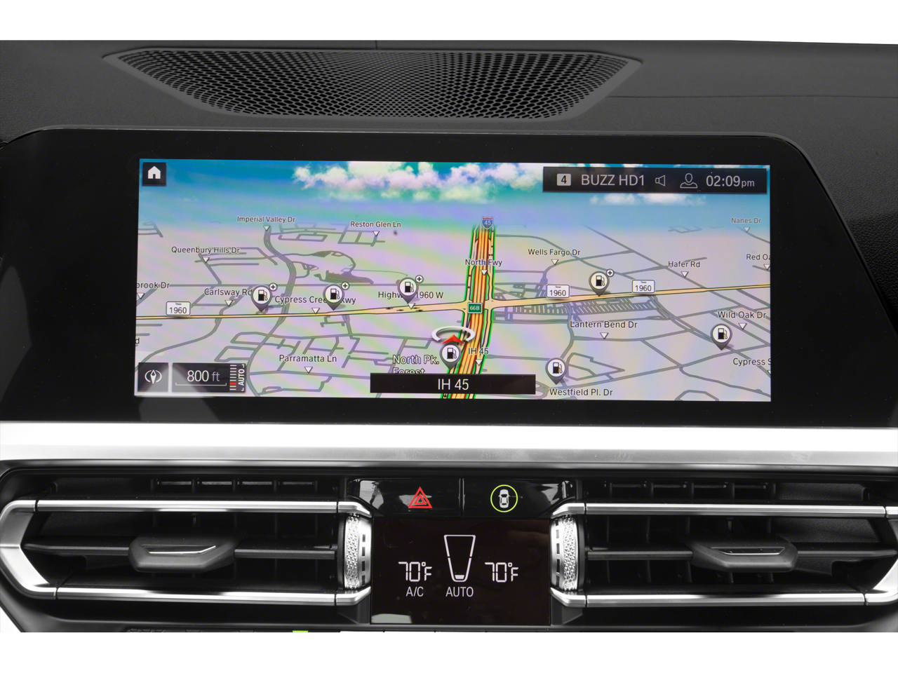 This 2021 BMW 3 Series 330i xDrive in White comes with the following features: 2.0L 4-Cylinder DOHC 16V Turbocharged 8-Speed Automatic Sport AWD Connected Package Pro, AWD, 10 Speakers, 4-Wheel Disc Brakes, ABS brakes, Air Conditioning, Alloy wheels, AM/FM radio: SiriusXM with 360L, Apple CarPlay & Android Auto Compatibility, Auto High-beam Headlights, Auto-dimming door mirrors, Auto-dimming Rear-View mirror, Automatic temperature control, BMW Assist eCall, BMW TeleServices, Brake assist, Bumpers: body-color, Compass, ConnectedDrive Services, Delay-off headlights, Driver door bin, Driver vanity mirror, Dual front impact airbags, Dual front side impact airbags, DVD Area Coding (North America), Electronic Stability Control, Emergency communication system: BMW Assist eCall, Exterior Parking Camera Rear, Four wheel independent suspension, Front anti-roll bar, Front Bucket Seats, Front Center Armrest, Front dual zone A/C, Front reading lights, Fully automatic headlights, Garage door transmitter, Genuine wood console insert, Genuine wood dashboard insert, Hands-Free Bluetooth® & USB Audio Connection, Heated door mirrors, Hi-Fi Sound System, Illuminated entry, Knee airbag, Leather Shift Knob, Leather steering wheel, Low tire pressure warning, Memory seat, Navigation, Navigation System, Occupant sensing airbag, Outside temperature display, Overhead airbag, Panic alarm, Passenger door bin, Passenger vanity mirror, Power door mirrors, Power driver seat, Power Front Seats, Power moonroof, Power passenger seat, Power steering, Power windows, Radio Control US, Radio data system, Radio: AM/FM Audio System, Rain sensing wipers, Rear air conditioning, Rear anti-roll bar, Rear reading lights, Rear seat center armrest, Rear window defroster, Remote keyless entry, Security system, SensaTec Upholstery, SiriusXM w/360L, Speed control, Speed-sensing steering, Speed-Sensitive Wipers, Split folding rear seat, Sport Seats, Sport steering wheel, Steering wheel mounted audio controls, Tachometer, Telescoping steering wheel, Tilt steering wheel, Traction control, Trip computer, Turn signal indicator mirrors, Variably intermittent wipers, and Wheels: 18 x 7.5 V-Spoke Bi-Color Orbit Grey. 25/34 City/Highway MPG