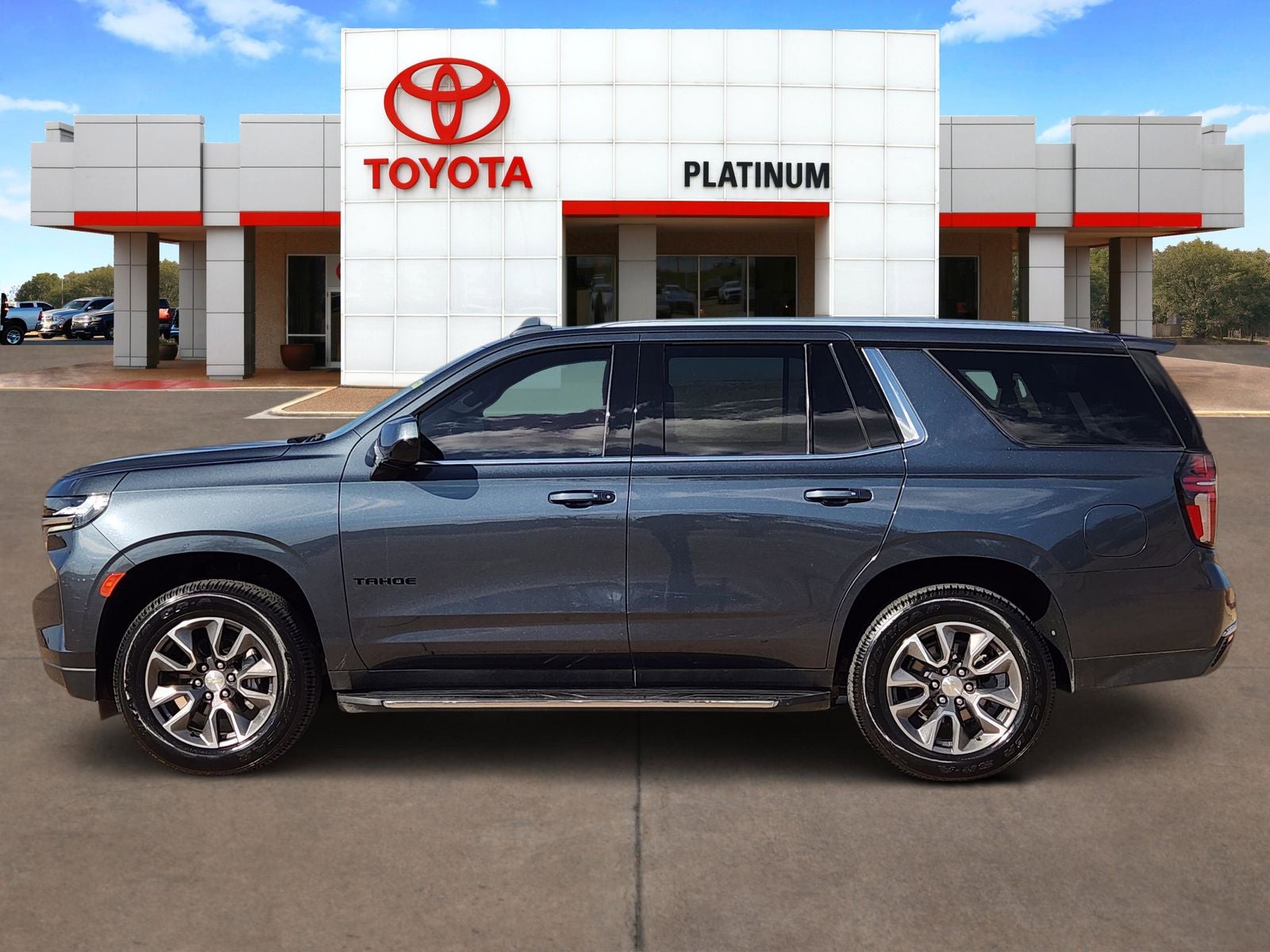 This 2021 Chevrolet Tahoe comes nicely equipped with License Plate Front Mounting Package, Preferred Equipment Group 1LT (1st & 2nd Row Color-Keyed Carpeted Floor Mats, 2 USB Data Ports, Auto-Dimming Inside Rear-View Mirror, Bright Front & Rear Door Sill Plates, Color-Keyed Carpeting Floor Covering, Driver & Front Outboard Passenger Airbags, Floor Console w/Storage Area, Hands-Free Rear Power Programmable Liftgate, HD Radio, Infotainment Display, Leather-Wrapped Steering Wheel, LED Daytime Running Lamps, Memory Settings for Driver, Remote Start, SiriusXM Radio w/360L, and Universal Home Remote), Black Leather, 10-Way Power Driver & Passenger Seat Adjusters, 2nd Row Manual Bucket Seats, 3.23 Rear Axle Ratio, 3rd row seats: split-bench, 4-Wheel Disc Brakes, 9 Speakers, ABS brakes, Air Conditioning, Alloy wheels, AM/FM radio: SiriusXM with 360L, Apple CarPlay/Android Auto, Auto High-beam Headlights, Auto-dimming Rear-View mirror, Automatic temperature control, Black Exhaust Tip (LPO), Black Name Plates (LPO), Bose 9-Speaker Stereo Audio System Feature, Brake assist, Bumpers: body-color, Compass, Delay-off headlights, Driver door bin, Driver vanity mirror, Dual front impact airbags, Dual front side impact airbags, Dual-Pane Power Panoramic Sunroof, Electronic Stability Control, Emergency communication system: OnStar and Chevrolet connected services capable, Four wheel independent suspension, Front & Rear Black Bowtie Emblems (LPO), Front anti-roll bar, Front Bucket Seats, Front Center Armrest, Front dual zone A/C, Front High-Back Reclining Bucket Seats, Front reading lights, Fully automatic headlights, Garage door transmitter, Heated door mirrors, Heated Driver & Front Passenger Seats, Heated front seats, Illuminated entry, Leather Seat Trim, Leather steering wheel, Low tire pressure warning, Memory seat, Not Equipped w/Automatic Stop/Start, Occupant sensing airbag, Outside temperature display, Overhead airbag, Overhead console, Panic alarm, Passenger door bin, Passenger vanity mirror, Power door mirrors, Power driver seat, Power Liftgate, Power passenger seat, Power steering, Power windows, Premium audio system: Chevrolet Infotainment 3, Premium Smooth Ride Suspension, Radio: Chevrolet Infotainment 3 Plus System, Rain sensing wipers, Rear air conditioning, Rear anti-roll bar, Rear reading lights, Rear seat center armrest, Rear window defroster, Rear window wiper, Remote keyless entry, Roof rack: rails only, Security system, Set of 4 Wheel Locks (LPO), Speed control, Speed-sensing steering, Split folding rear seat, Spoiler, Steering wheel mounted audio controls, Tachometer, Telescoping steering wheel, Tilt steering wheel, Traction control, Trip computer, Variably intermittent wipers, Voltmeter, Wheels: 18 x 8.5 Bright Silver Painted Aluminum, and Wheels: 20 x 9 Painted Aluminum.