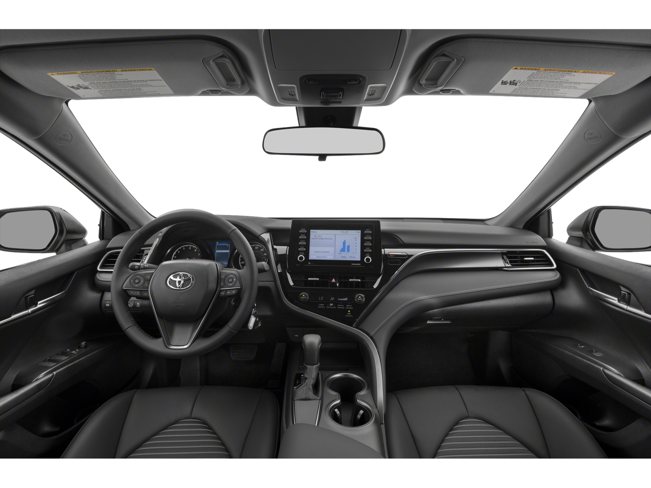 This 2021 Toyota Camry comes nicely equipped with Macadamia Cloth, 4-Wheel Disc Brakes, 6 Speakers, ABS brakes, Air Conditioning, Alloy wheels, AM/FM radio: SiriusXM, Apple CarPlay/Android Auto, Auto High-beam Headlights, Automatic temperature control, Brake assist, Bumpers: body-color, Delay-off headlights, Driver door bin, Driver vanity mirror, Dual front impact airbags, Dual front side impact airbags, Electronic Stability Control, Emergency communication system: Safety Connect with 1-year trial, Exterior Parking Camera Rear, Fabric Seat Trim w/Sport SofTex, Four wheel independent suspension, Front anti-roll bar, Front Bucket Seats, Front Center Armrest, Front reading lights, Fully automatic headlights, Illuminated entry, Knee airbag, Low tire pressure warning, Occupant sensing airbag, Outside temperature display, Overhead airbag, Overhead console, Panic alarm, Passenger door bin, Passenger vanity mirror, Power door mirrors, Power driver seat, Power steering, Power windows, Radio data system, Radio: AM/FM Audio System, Rear anti-roll bar, Rear seat center armrest, Rear side impact airbag, Rear window defroster, Remote keyless entry, Security system, Speed control, Speed-sensing steering, Split folding rear seat, Spoiler, Steering wheel mounted audio controls, Tachometer, Telescoping steering wheel, Tilt steering wheel, Traction control, Trip computer, Variably intermittent wipers, and Wheels: 8.0J x 18 Black Machined-Finish Alloy.