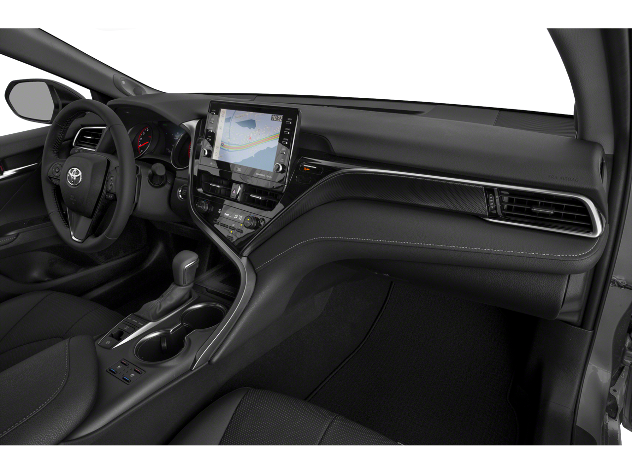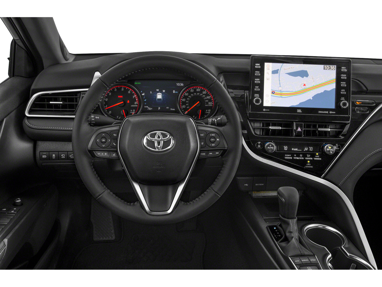 This 2021 Toyota Camry XSE in Pearl comes with the following features: 2.5L I4 DOHC 16V 8-Speed Automatic FWD Preferred Accessory Package (Z6) (TMS) (Hide Away Cargo Net (TMS), Rear Bumper Applique (Black) (TMS), and Rocker Applique (TMS)), Black Leather, 4-Wheel Disc Brakes, 6 Speakers, ABS brakes, Air Conditioning, Alloy wheels, AM/FM radio: SiriusXM, Apple CarPlay/Android Auto, Auto High-beam Headlights, Auto-dimming Rear-View mirror, Automatic temperature control, Brake assist, Bumpers: body-color, Delay-off headlights, Driver door bin, Driver vanity mirror, Dual front impact airbags, Dual front side impact airbags, Electronic Stability Control, Emergency communication system: Safety Connect with 1-year trial, Exterior Parking Camera Rear, Four wheel independent suspension, Front anti-roll bar, Front Bucket Seats, Front Center Armrest, Front dual zone A/C, Front reading lights, Fully automatic headlights, Garage door transmitter: HomeLink, Heated door mirrors, Heated front seats, Illuminated entry, Knee airbag, Low tire pressure warning, Multi-Stage Heated Front Bucket Seats, Occupant sensing airbag, Outside temperature display, Overhead airbag, Overhead console, Panic alarm, Panoramic Glass Roof, Passenger door bin, Passenger vanity mirror, Perforated Leather Seat Trim, Power door mirrors, Power driver seat, Power passenger seat, Power steering, Power windows, Radio data system, Radio: AM/FM/HD Audio Plus, Rear anti-roll bar, Rear Dual USB Power Port Charger (TMS), Rear reading lights, Rear seat center armrest, Rear side impact airbag, Rear window defroster, Remote keyless entry, Security system, Speed control, Speed-sensing steering, Split folding rear seat, Spoiler, Steering wheel mounted audio controls, Tachometer, Telescoping steering wheel, Tilt steering wheel, Traction control, Trip computer, Turn signal indicator mirrors, Variably intermittent wipers, and Wheels: 8.0J x 19 Black Machined-Finish Alloy. 27/38 City/Highway MPG