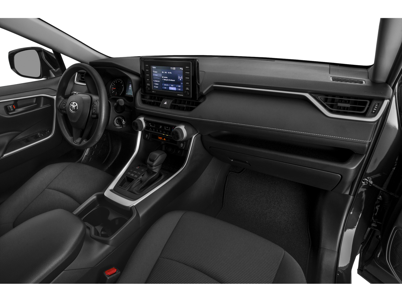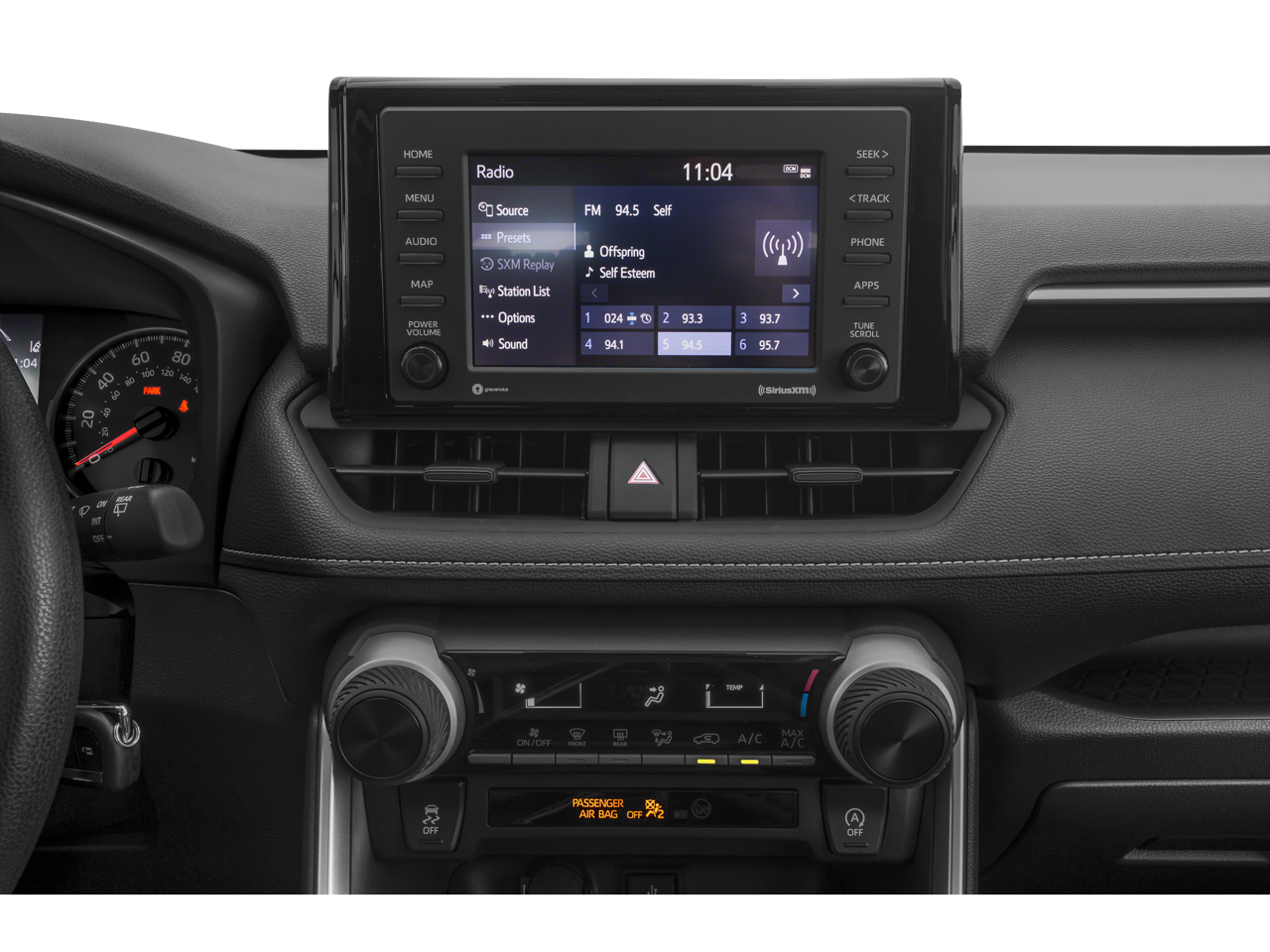 This 2021 Toyota RAV4 comes nicely equipped with Cloth, 17 Steel Wheels, 4-Wheel Disc Brakes, 6 Speakers, ABS brakes, Air Conditioning, AM/FM radio: SiriusXM, AM/FM Stereo, Apple CarPlay/Android Auto, Auto High-beam Headlights, Axle Ratio: 3.177, Brake assist, Bumpers: body-color, Driver door bin, Driver vanity mirror, Dual front impact airbags, Dual front side impact airbags, Electronic Stability Control, Emergency communication system, Exterior Parking Camera Rear, Fabric Seat Trim, Four wheel independent suspension, Front anti-roll bar, Front Bucket Seats, Front Center Armrest, Front reading lights, Illuminated entry, Knee airbag, Low tire pressure warning, Occupant sensing airbag, Outside temperature display, Overhead airbag, Overhead console, Panic alarm, Passenger door bin, Passenger vanity mirror, Power door mirrors, Power steering, Power windows, Radio data system, Rear anti-roll bar, Rear seat center armrest, Rear window defroster, Rear window wiper, Remote keyless entry, Roof rack: rails only, Speed control, Speed-sensing steering, Split folding rear seat, Spoiler, Steering wheel mounted audio controls, Tachometer, Telescoping steering wheel, Tilt steering wheel, Traction control, and Trip computer.