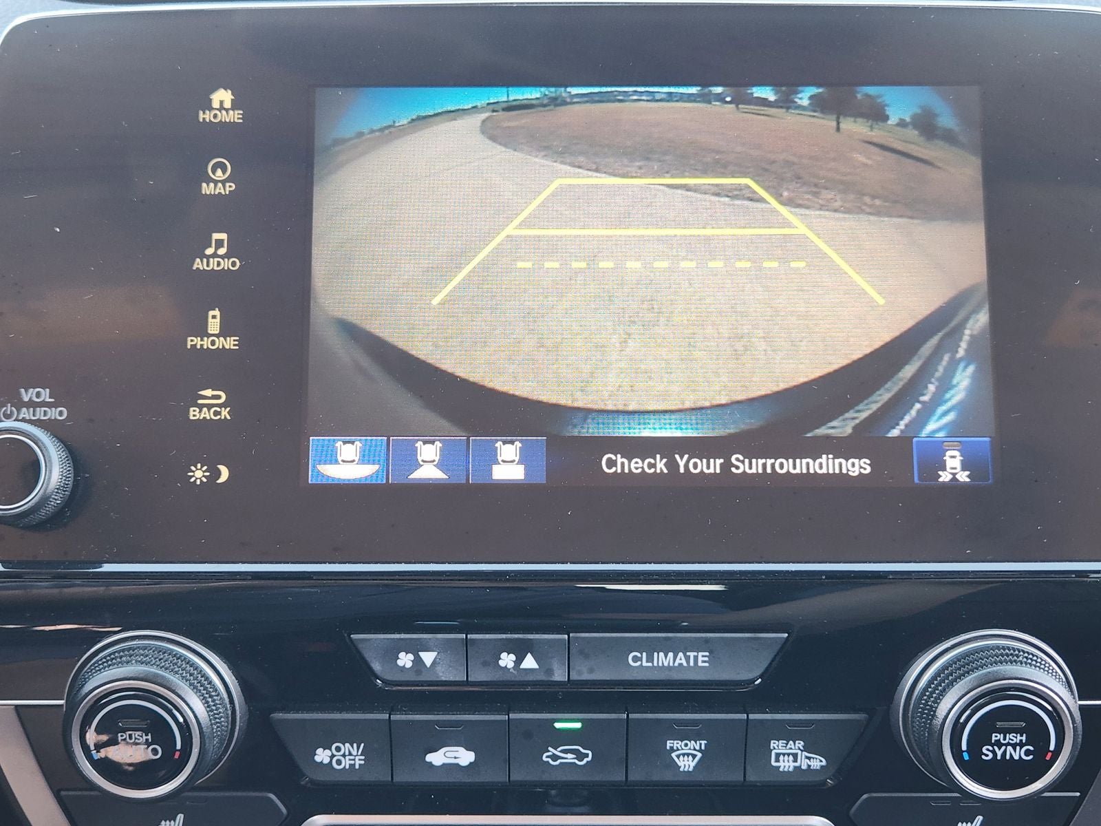 This 2022 Honda CR-V comes nicely equipped with AWD, 4-Wheel Disc Brakes, 5.64 Axle Ratio, 9 Speakers, ABS brakes, Adaptive Cruise Control: Adaptive Cruise Control (ACC) with Low-Speed Follow, Air Conditioning, Alloy wheels, AM/FM radio: SiriusXM, Apple CarPlay/Android Auto, Auto High-beam Headlights, Auto-dimming Rear-View mirror, Automatic temperature control, Blind Spot Information (BSI) System warning, Brake assist, Bumpers: body-color, Compass, Delay-off headlights, Driver door bin, Driver vanity mirror, Dual front impact airbags, Dual front side impact airbags, Electronic Stability Control, Exterior Parking Camera Rear, Forward collision: Collision Mitigation Braking System (CMBS) + FCW mitigation, Four wheel independent suspension, Front anti-roll bar, Front Bucket Seats, Front Center Armrest, Front dual zone A/C, Front fog lights, Front reading lights, Garage door transmitter: HomeLink, Heated door mirrors, Heated Front Bucket Seats, Heated front seats, Heated steering wheel, Illuminated entry, Leather Seat Trim, Leather Shift Knob, Low tire pressure warning, Memory seat, Navigation system: Honda Satellite-Linked Navigation System, Occupant sensing airbag, Outside temperature display, Overhead airbag, Overhead console, Panic alarm, Passenger door bin, Passenger vanity mirror, Power door mirrors, Power driver seat, Power Liftgate, Power moonroof, Power passenger seat, Power steering, Power windows, Radio data system, Radio: 330-Watt AM/FM/HD/SiriusXM Prem Audio System, Rain sensing wipers, Rear anti-roll bar, Rear seat center armrest, Rear window defroster, Rear window wiper, Remote keyless entry, Roof rack: rails only, Security system, Speed control, Speed-sensing steering, Speed-Sensitive Wipers, Split folding rear seat, Spoiler, Steering wheel mounted audio controls, Tachometer, Telescoping steering wheel, Tilt steering wheel, Traction control, Trip computer, Turn signal indicator mirrors, Variably intermittent wipers, and Wheels: 19 Machine-Finished Alloy w/Gray Inserts.