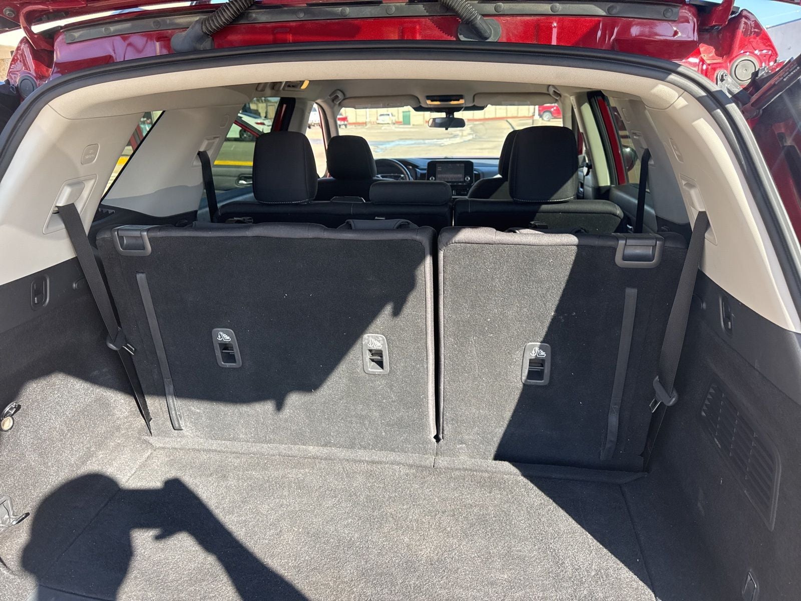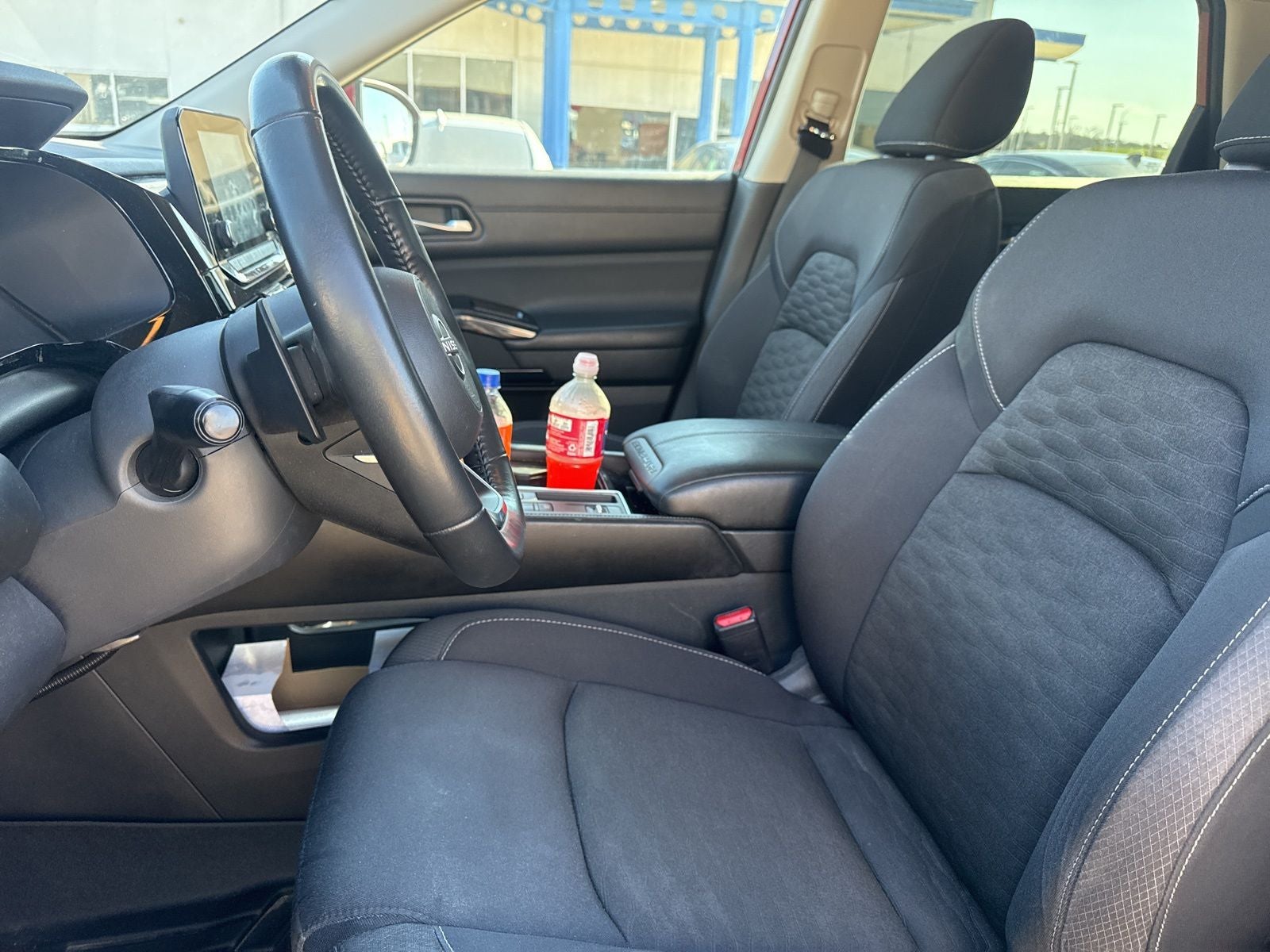 This 2022 Nissan Pathfinder SV in Scarlet Ember Tintcoat comes with the following features: 18 Painted Alloy Wheels, 3rd row seats: bench, 4-Wheel Disc Brakes, 6 Speakers, ABS brakes, Air Conditioning, Alloy wheels, AM/FM radio: SiriusXM, Auto High-beam Headlights, Automatic temperature control, Axle Ratio: TBD, Bench Seat Carpeted Floor Mats (Set of 4), Black Splash Guards (Set of 4), Brake assist, Bumpers: body-color, Cloth Seating Surfaces, Cross Bars, Delay-off headlights, Driver door bin, Driver vanity mirror, Dual front impact airbags, Dual front side impact airbags, Electronic Stability Control, Emergency communication system: NissanConnect Services, Four wheel independent suspension, Front anti-roll bar, Front Bucket Seats, Front Center Armrest, Front dual zone A/C, Front reading lights, Fully automatic headlights, Heated door mirrors, Heated Front Bucket Seats, Heated front seats, Illuminated entry, Knee airbag, Leather steering wheel, Low tire pressure warning, NissanConnect featuring Apple CarPlay and Android Auto, Occupant sensing airbag, Outside temperature display, Overhead airbag, Overhead console, Panic alarm, Passenger door bin, Passenger vanity mirror, Power door mirrors, Power driver seat, Power steering, Power windows, Radio data system, Radio: AM/FM Audio System w/NissanConnect, Rear air conditioning, Rear anti-roll bar, Rear Parking Sensors, Rear reading lights, Rear seat center armrest, Rear side impact airbag, Rear window defroster, Rear window wiper, Reclining 3rd row seat, Remote keyless entry, Security system, Speed control, Speed-sensing steering, Split folding rear seat, Spoiler, Steering wheel mounted audio controls, Tachometer, Telescoping steering wheel, Tilt steering wheel, Traction control, Trip computer, Turn signal indicator mirrors, and Variably intermittent wipers. 21/26 City/Highway MPG