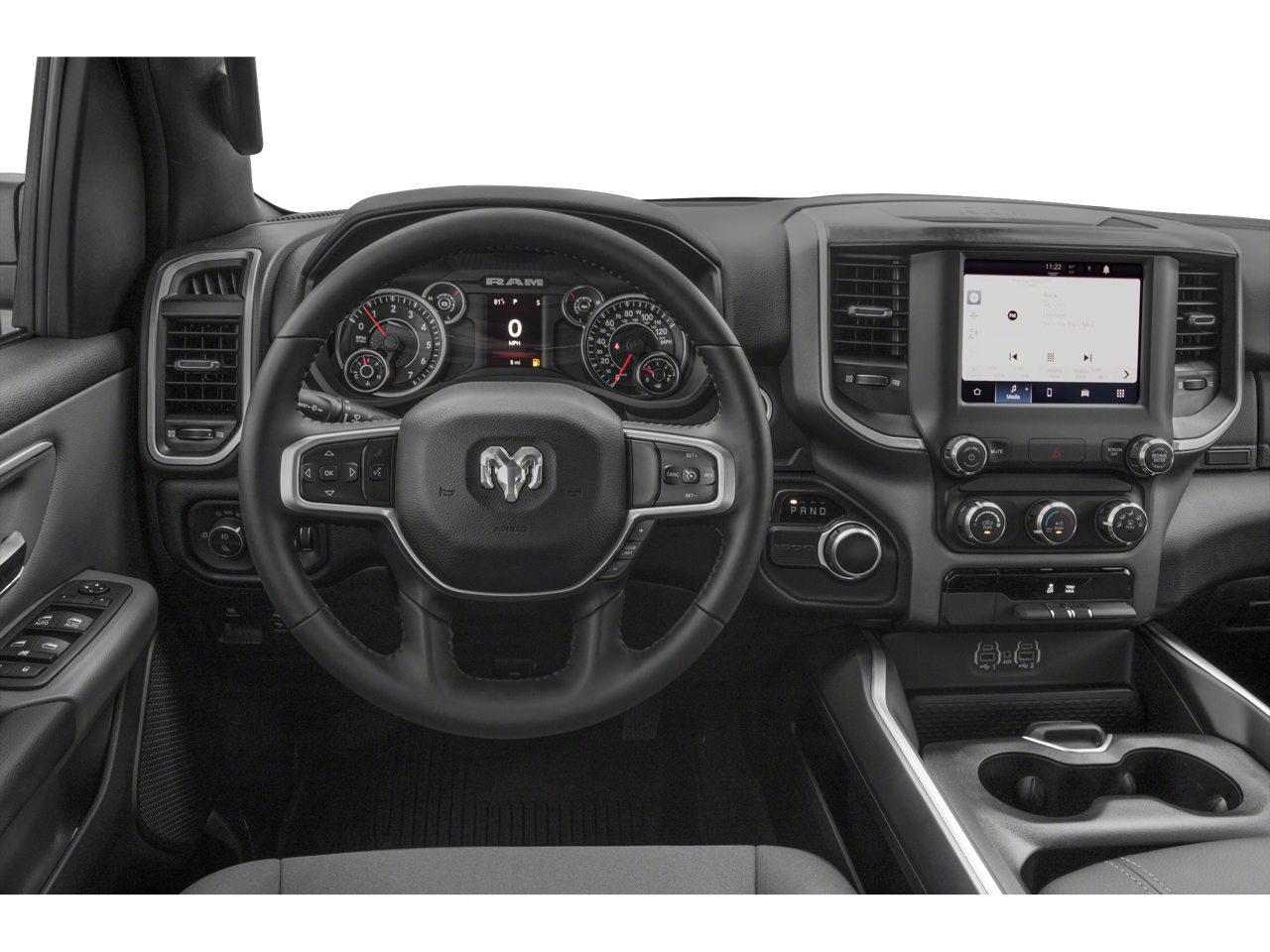 This 2022 Ram 1500 Big Horn/Lone Star in Diamond Black Crystal Pearlcoat comes with the following features: HEMI 5.7L V8 Multi Displacement VVT 8-Speed Automatic 4WD Big Horn Level B Equipment Group (DISC) (115V Auxiliary Power Outlet, 115V Auxiliary Rear Power Outlet, 400W Inverter, 4G LTE Wi-Fi Hot Spot, 8.4 Touchscreen Display, Air Conditioning ATC w/Dual Zone Control, Apple CarPlay, Auto-Dimming Exterior Driver Mirror, Auto-Dimming Rear-View Mirror, Black Premium Power Mirrors (GUL), Bluetooth® Handsfree Phone & Audio, Class IV Receiver Hitch, Cluster 7.0 TFT Color Display, Connectivity - US/Canada, Exterior Mirrors Courtesy Lamps, Exterior Mirrors w/Supplemental Signals, Foam Bottle Insert (Door Trim Panel), For More Info, Call 800-643-2112, Glove Box Lamp, Google Android Auto, Heated Front Seats, Heated Steering Wheel, Integrated Center Stack Radio, Media Hub w/2 Charge Only USBs, ParkSense Front/Rear Park Assist w/Stop, Power 2-Way Driver Lumbar Adjust, Power 8-Way Driver Seat, Power Adjustable Pedals, Radio: Uconnect 5 W w/8.4 Display, Rear Dome w/On/Off Switch Lamp, Rear Power Sliding Window, Rear Window Defroster, Remote Start System, Security Alarm, SiriusXM Radio Service, SiriusXM Satellite Radio, Sun Visors w/Illuminated Vanity Mirrors, Universal Garage Door Opener, and USB Host Flip), Quick Order Package 25R Lone Star (Regional) (Lone Star Badge), 3 Rear Seat Head Restraints, 3.21 Rear Axle Ratio, 4 Way Front Headrests, 4-Wheel Disc Brakes, 48V Belt Starter Generator, 6 Speakers, ABS brakes, Air Conditioning, Alloy wheels, AM/FM radio, Anti-Spin Differential Rear Axle, Black Exterior Mirrors, Brake assist, Bumpers: chrome, Cloth Bench Seat, Compass, Convex Wide-Angle Mirror Insert, Delay-off headlights, Driver door bin, Dual front impact airbags, Dual front side impact airbags, Electronic Stability Control, Emergency communication system: SiriusXM Guardian, Front anti-roll bar, Front Center Armrest w/Storage, Front fog lights, Front License Plate Bracket, Front reading lights, Front Seat Back Map Pockets, Front wheel independent suspension, Fully automatic headlights, Global Telematics Box Module (TBM), GPS Antenna Input, Heated door mirrors, Illuminated entry, Integrated Voice Command w/Bluetooth®, Leather steering wheel, Low tire pressure warning, Manual Adjust 4-Way Front Passenger Seat, Manufacturer's Statement of Origin, MOPAR Front & Rear Rubber Floor Mats, Occupant sensing airbag, Outside temperature display, Overhead airbag, Overhead console, Panic alarm, ParkView Rear Back-Up Camera, Passenger door bin, Passenger vanity mirror, Power door mirrors, Power steering, Power windows, Radio data system, Radio: Uconnect 3 w/5 Display, Rear 60/40 Folding Seat, Rear anti-roll bar, Rear seat center armrest, Rear step bumper, Remote keyless entry, Speed control, Split folding rear seat, Steering wheel mounted audio controls, Tachometer, Telescoping steering wheel, Tilt steering wheel, Traction control, Trip computer, Variably intermittent wipers, Voltmeter, Wheels: 18 x 8 Cast-Aluminum Painted, and Wheels: 20 x 9 Aluminum Chrome Clad (WRK)