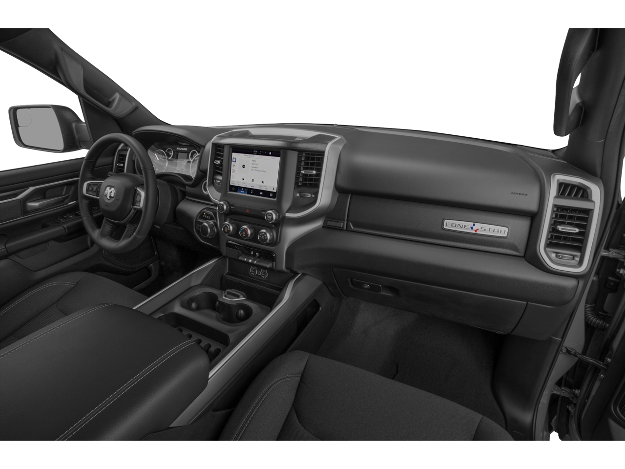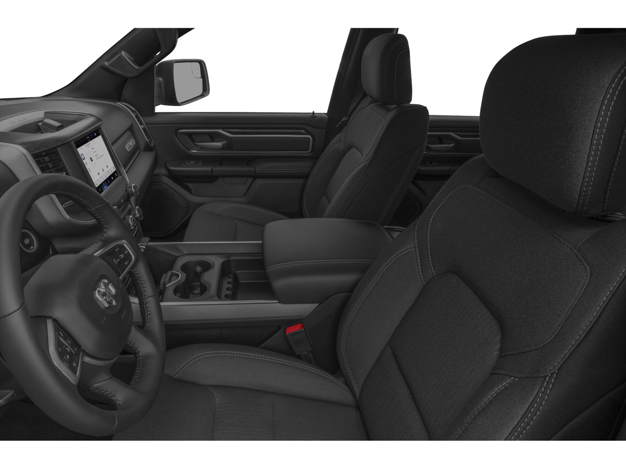 This 2022 Ram 1500 comes nicely equipped with Big Horn Level 2 Equipment Group (115V Auxiliary Power Outlet, 115V Auxiliary Rear Power Outlet, 2nd Row In Floor Storage Bins, 400W Inverter, 4G LTE Wi-Fi Hot Spot, 8.4 Touchscreen Display, Air Conditioning ATC w/Dual Zone Control, Apple CarPlay, Auto-Dimming Exterior Driver Mirror, Auto-Dimming Rear-View Mirror, Black Exterior Mirrors, Black Premium Power Mirrors, Bluetooth® Handsfree Phone & Audio, Class IV Receiver Hitch, Cluster 7.0 TFT Color Display, Connectivity - US/Canada, Convex Wide-Angle Mirror Insert, Exterior Mirrors Courtesy Lamps, Exterior Mirrors w/Heating Element, Exterior Mirrors w/Supplemental Signals, For Details, Visit DriveUconnect.com, Global Telematics Box Module (TBM), Glove Box Lamp, Google Android Auto, GPS Antenna Input, Heated Front Seats, Heated Steering Wheel, Integrated Center Stack Radio, Media Hub w/2 Charge Only USBs, ParkSense Front/Rear Park Assist w/Stop, Power 2-Way Driver Lumbar Adjust, Power 8-Way Driver Seat, Power Adjustable Pedals, Power-Folding Mirrors, Radio: Uconnect 5 W w/8.4 Display, Rear Dome w/On/Off Switch Lamp, Rear Power Sliding Window, Rear Window Defroster, Remote Start System, Security Alarm, SiriusXM Radio Service, SiriusXM Satellite Radio, Sun Visors w/Illuminated Vanity Mirrors, Universal Garage Door Opener, and USB Host Flip), Built-To-Serve Edition (20 x 9 Aluminum Wheels, 3 Rear Seat Head Restraints, 4 Way Front Headrests, 9 Amplified Speakers w/Subwoofer, Black Door Handles, Black Exterior Truck Badging, Black Front Bumper, Black Headlamp Bezels, Black Onyx Interior Accent, Black Rear Bumper, Body Color Fender Flares, Bucket Seats, Built-To-Serve Edition I/P Badge, Center Console Parts Module, Delete LED Lamp - Floor Console Bin, Dual Exhaust w/Black Tips, E-Locker Rear Axle, Falken Brand Tires, Front Extra HD Shock Absorbers, Front LED Fog Lamps, Front Seat Back Map Pockets, Full Length Floor Console, Grille Surround 1 Black Texture 1 Black, Hill Descent Control, LED Reflector Headlamps, LED Taillamps, Manual Adjust 4-Way Front Passenger Seat, MOPAR Front & Rear Rubber Floor Mats, MOPAR Lockable Console Storage, Power 4-Way Driver Lumbar Adjust, Premium Cloth/Vinyl Bucket Seats, Raised Ride Height, RAM Grille Badge - Black, Rear 60/40 Folding Seat, Rear Extra HD Shock Absorbers, Tow Hooks, and US Flag Decal), Quick Order Package 27Z Big Horn (Big Horn Badge), 3.21 Rear Axle Ratio, 4-Wheel Disc Brakes, 48V Belt Starter Generator, 6 Speakers, ABS brakes, Air Conditioning, All R1 High Radios, All Radio Equipped Vehicles, Alloy wheels, AM/FM radio, Brake assist, Bumpers: chrome, Cloth Bench Seat, Compass, Connected Travel & Traffic Services, Delay-off headlights, Disassociated Touchscreen Display, Driver door bin, Dual front impact airbags, Dual front side impact airbags, Electronic Stability Control, Emergency communication system: SiriusXM Guardian, Front anti-roll bar, Front Center Armrest w/Storage, Front fog lights, Front License Plate Bracket, Front reading lights, Front wheel independent suspension, Fully automatic headlights, GPS Navigation, HD Radio, Heated door mirrors, Heavy-Duty Engine Cooling, Illuminated entry, Integrated Voice Command w/Bluetooth®, Leather steering wheel, Low tire pressure warning, MOPAR Black Tubular Side Steps (DISC), Occupant sensing airbag, Outside temperature display, Overhead airbag, Overhead console, Panic alarm, ParkView Rear Back-Up Camera, Passenger door bin, Passenger vanity mirror, Power door mirrors, Power steering, Power windows, Radio data system, Radio: Uconnect 3 w/5 Display, Radio: Uconnect 5 Nav w/8.4 Display, Rear anti-roll bar, Rear seat center armrest, Rear step bumper, Remote keyless entry, SiriusXM w/360L, Speed control, Split folding rear seat, Steering wheel mounted audio controls, Tachometer, Telescoping steering wheel, Tilt steering wheel, Traction control, Trip computer, Variably intermittent wipers, Voltmeter, and Wheels: 18 x