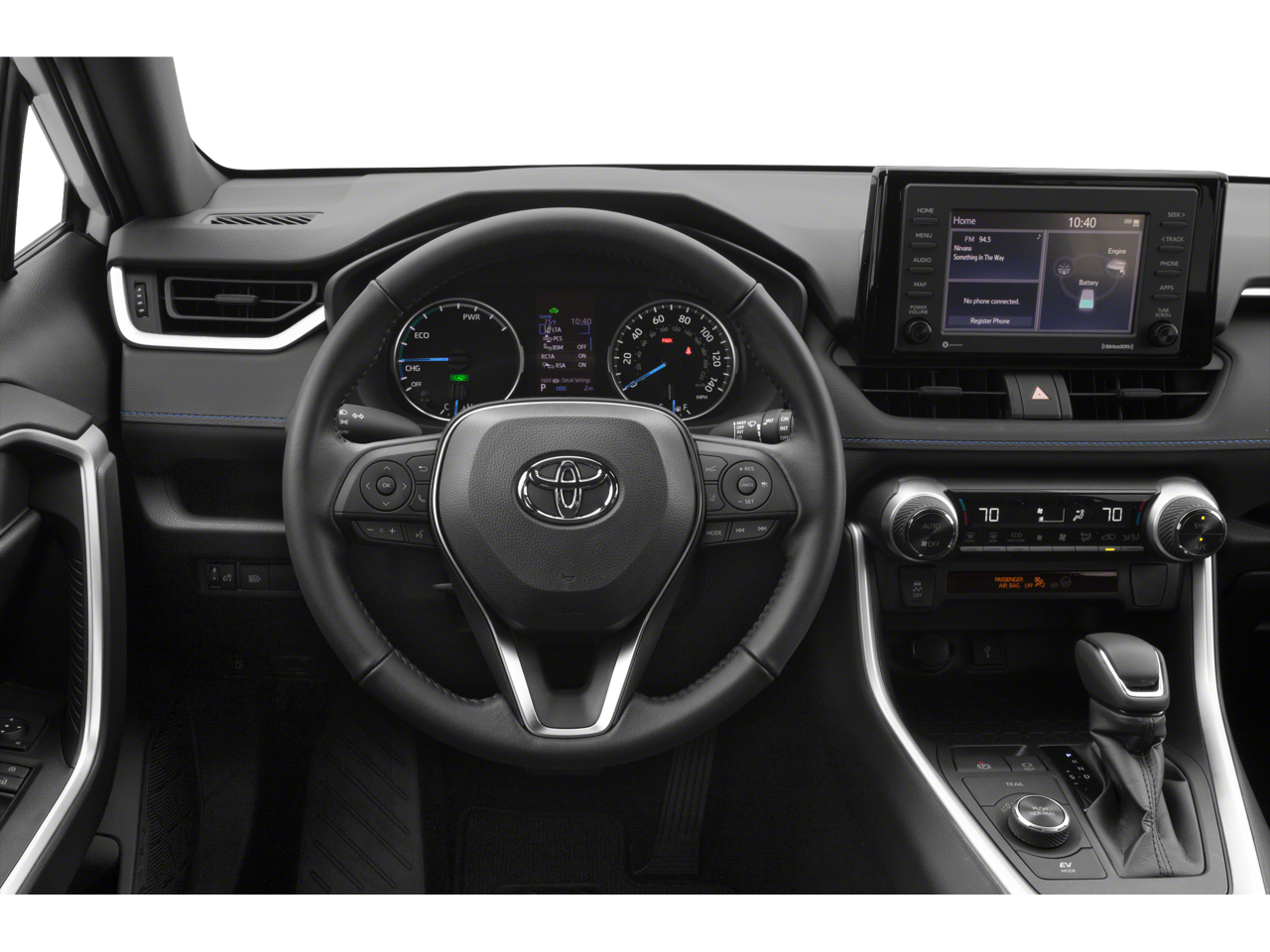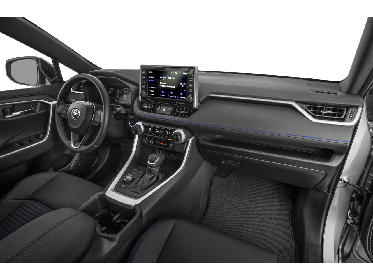 This 2022 Toyota RAV4 comes nicely equipped with 2.5L 4-Cylinder, AWD, 4-Wheel Disc Brakes, 6 Speakers, ABS brakes, Air Conditioning, Alloy wheels, AM/FM radio: SiriusXM, Anti-Theft System, Apple CarPlay/Android Auto, Auto High-beam Headlights, Auto-dimming Rear-View mirror, Automatic temperature control, Axle Ratio: TBD, Brake assist, Bumpers: body-color, Delay-off headlights, Driver door bin, Driver vanity mirror, Dual front impact airbags, Dual front side impact airbags, Electronic Stability Control, Emergency communication system: Safety Connect with 1-year trial, Four wheel independent suspension, Front anti-roll bar, Front Bucket Seats, Front Center Armrest, Front dual zone A/C, Front fog lights, Front reading lights, Fully automatic headlights, Garage door transmitter: HomeLink, Heated door mirrors, Heated Front Seats, Heated front seats, Illuminated entry, Knee airbag, Lane Departure Warning System, Leather Shift Knob, Low tire pressure warning, Occupant sensing airbag, Outside temperature display, Overhead airbag, Overhead console, Panic alarm, Passenger door bin, Passenger vanity mirror, Power door mirrors, Power driver seat, Power Liftgate, Power moonroof, Power steering, Power windows, Radio data system, Radio: Audio Plus, Rear anti-roll bar, Rear seat center armrest, Rear window defroster, Rear window wiper, Remote keyless entry, Roof rack: rails only, Security system, SofTex Seat Trim (EC), Speed control, Speed-sensing steering, Split folding rear seat, Spoiler, Steering wheel mounted audio controls, Telescoping steering wheel, Tilt steering wheel, Traction control, Trip computer, Turn signal indicator mirrors, Variably intermittent wipers, and Wheels: 18 x 7.0J Black-Painted Aluminum Alloy.