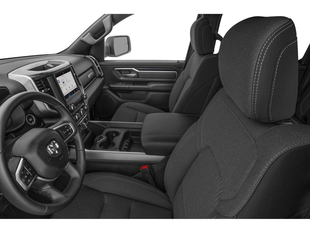 This 2023 Ram 1500 Big Horn/Lone Star in Bright White Clearcoat comes with the following features: Big Horn Level 2 Equipment Group (DISC) (115V Auxiliary Power Outlet, 2nd Row In Floor Storage Bins, 400W Inverter, 4G LTE Wi-Fi Hot Spot, 8.4 Touchscreen Display, 9 Amplified Speakers w/Subwoofer, Air Conditioning ATC w/Dual Zone Control, Apple CarPlay, Auto-Dimming Exterior Driver Mirror, Auto-Dimming Rear-View Mirror, Black Exterior Mirrors, Black Premium Power Mirrors, Bluetooth® Handsfree Phone & Audio, Class IV Receiver Hitch, Cluster 7.0 TFT Color Display, Connectivity - US/Canada, Convex Wide-Angle Exterior Mirror Insert, Electric Shift-On-Demand Transfer Case, Exterior Mirrors Courtesy Lamps, Exterior Mirrors w/Heating Element, Exterior Mirrors w/Supplemental Signals, For Details, Visit DriveUconnect.com, For More Info, Call 800-643-2112, Front Fog Lamps, Glove Box Lamp, Google Android Auto, GPS Antenna Input, Heated Front Seats, Heated Steering Wheel, Integrated Center Stack Radio, LED Footwell Lighting, Media Hub w/2 Charge Only USBs, ParkSense Front/Rear Park Assist w/Stop, Power 2-Way Driver Lumbar Adjust, Power 8-Way Driver Seat, Power Adjustable Pedals, Power-Folding Mirrors, Radio: Uconnect 5 W w/8.4 Display, Rear Dome w/On/Off Switch Lamp, Rear Power Sliding Window, Rear Window Defroster, Remote Start System, Security Alarm, SiriusXM Satellite Radio, Sun Visors w/Illuminated Vanity Mirrors, Universal Garage Door Opener, and USB Host Flip), Quick Order Package 27R Lone Star (Regional) (Lone Star Badge), 3 Rear Seat Head Restraints, 3.21 Rear Axle Ratio, 4 Way Front Headrests, 4-Wheel Disc Brakes, 48V Belt Starter Generator, 6 Speakers, ABS brakes, Air Conditioning, Alloy wheels, AM/FM radio, Brake assist, Bumpers: chrome, Cloth Bench Seat, Compass, Delay-off headlights, Driver door bin, Dual front impact airbags, Dual front side impact airbags, E-Locker Rear Axle, Electronic Stability Control, Emergency communication system: SiriusXM Guardian, Front anti-roll bar, Front Center Armrest w/Storage, Front License Plate Bracket, Front reading lights, Front Seat Back Map Pockets, Front wheel independent suspension, Fully automatic headlights, Global Telematics Box Module (TBM), Heated door mirrors, Illuminated entry, Integrated Voice Command w/Bluetooth®, Leather steering wheel, Low tire pressure warning, Mopar Black Tubular Side Steps, MOPAR Front & Rear Rubber Floor Mats, Occupant sensing airbag, Outside temperature display, Overhead airbag, Overhead console, Panic alarm, ParkView Rear Back-Up Camera, Passenger door bin, Passenger vanity mirror, Power door mirrors, Power steering, Power windows, Radio data system, Radio: Uconnect 3 w/5 Display, RAM Grille Badge - Chrome, Rear 60/40 Folding Seat, Rear anti-roll bar, Rear seat center armrest, Rear step bumper, Remote keyless entry, Speed control, Split folding rear seat, Steering wheel mounted audio controls, Tachometer, Telescoping steering wheel, Tilt steering wheel, Traction control, Trip computer, Variably intermittent wipers, Voltmeter, and Wheels: 18 x 8 Cast-Aluminum PainteD.