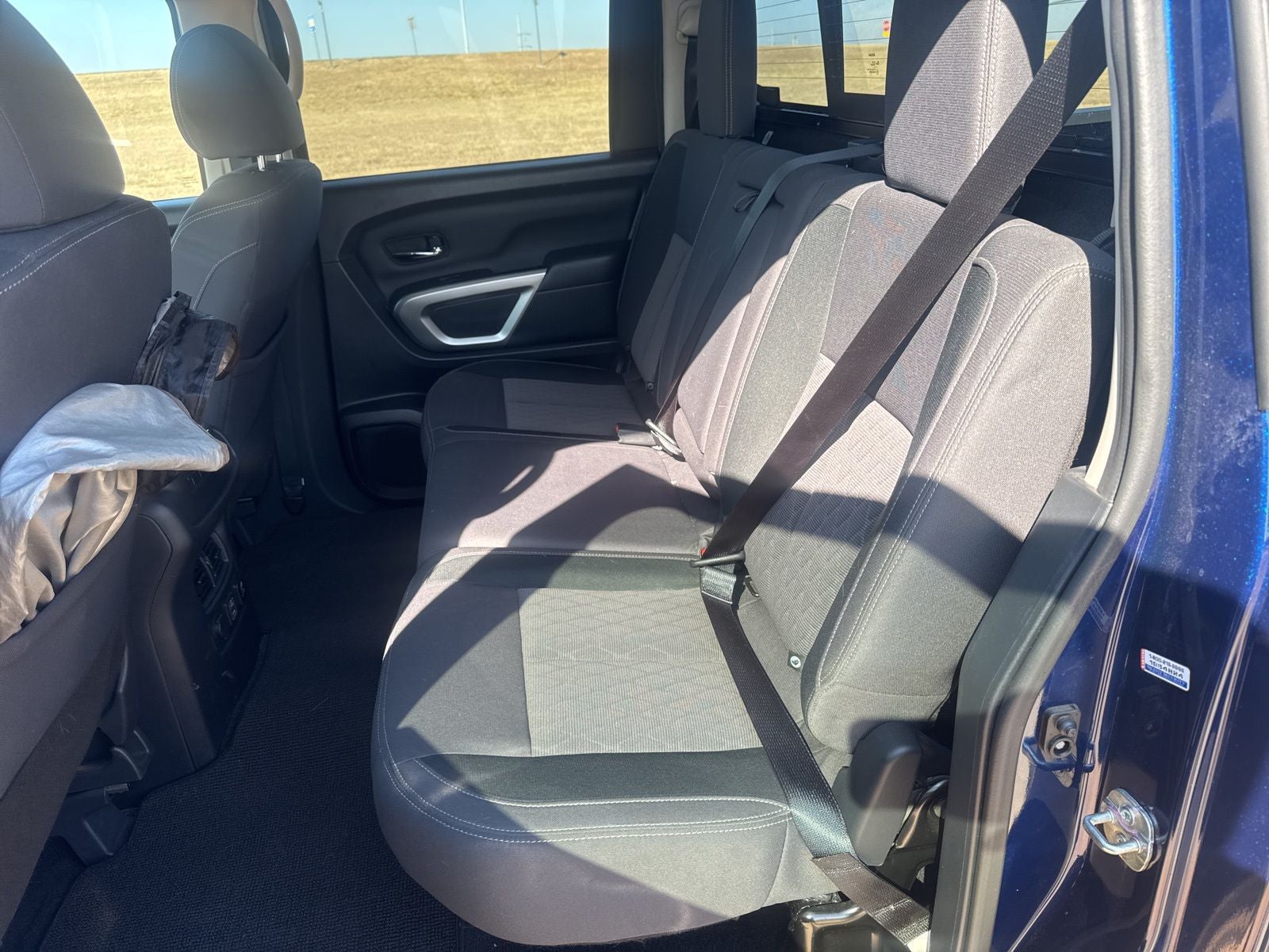 This 2024 Nissan Titan SV in Deep Blue Pearl comes with the following features: Accessory Utility Package (Bumper Step, Drop In Bed Liner, and Trailer Hitch), SV Convenience Package (120V/12V Outlets In Back Of Center Console, 2 Illuminated USB-A Ports In Back Of Center Console, Auto-Dimming Rear-View Mirror, Dedicated Cell Phone Holder, Dual Illuminated Vanity Mirror Front Sun Visors, Dual Zone Automatic HVAC, Front & Rear Parking Sensors, Heated Front Captain's Chairs, Intelligent Key System, Leather-Wrapped Steering Wheel, Mood Light, NissanConnect Services, Overhead Console w/Sunglass Holder, Power Sliding Rear Window w/Defogger, Rear HVAC Vents, Remote Engine Start System, and Wi-Fi Hotspot), 3.692 Axle Ratio, 4-Wheel Disc Brakes, 6 Speakers, ABS brakes, Air Conditioning, Alloy wheels, AM/FM radio: SiriusXM, Auto High-beam Headlights, Blind Spot Warning, Brake assist, Bumpers: chrome, Carpet Floor Mats (L95), Cloth Seat Trim, Driver door bin, Dual front impact airbags, Dual front side impact airbags, Electronic Stability Control, Front anti-roll bar, Front Center Armrest w/Storage, Front reading lights, Front Split Bench Seat (40/20/40), Front wheel independent suspension, Fully automatic headlights, Heated door mirrors, Illuminated entry, Knee airbag, Loop Side Steps, Low tire pressure warning, NissanConnect featuring Apple CarPlay and Android Auto, Occupant sensing airbag, Outside temperature display, Overhead airbag, Overhead console, Panic alarm, Passenger door bin, Passenger vanity mirror, Power door mirrors, Power steering, Power windows, Radio data system, Radio: AM/FM Audio System, Rear anti-roll bar, Rear Parking Sensors, Rear reading lights, Rear seat center armrest, Rear step bumper, Rear window defroster, Remote keyless entry, Security system, Speed control, Speed-sensing steering, Speed-Sensitive Wipers, Splash Guards, Split folding rear seat, Steering wheel mounted audio controls, Tachometer, Telescoping steering wheel, Tilt steering wheel, Traction control, Trip computer, Variably intermittent wipers, Voltmeter, and Wheels: 18 x 8 Painted & Machined Alloy.