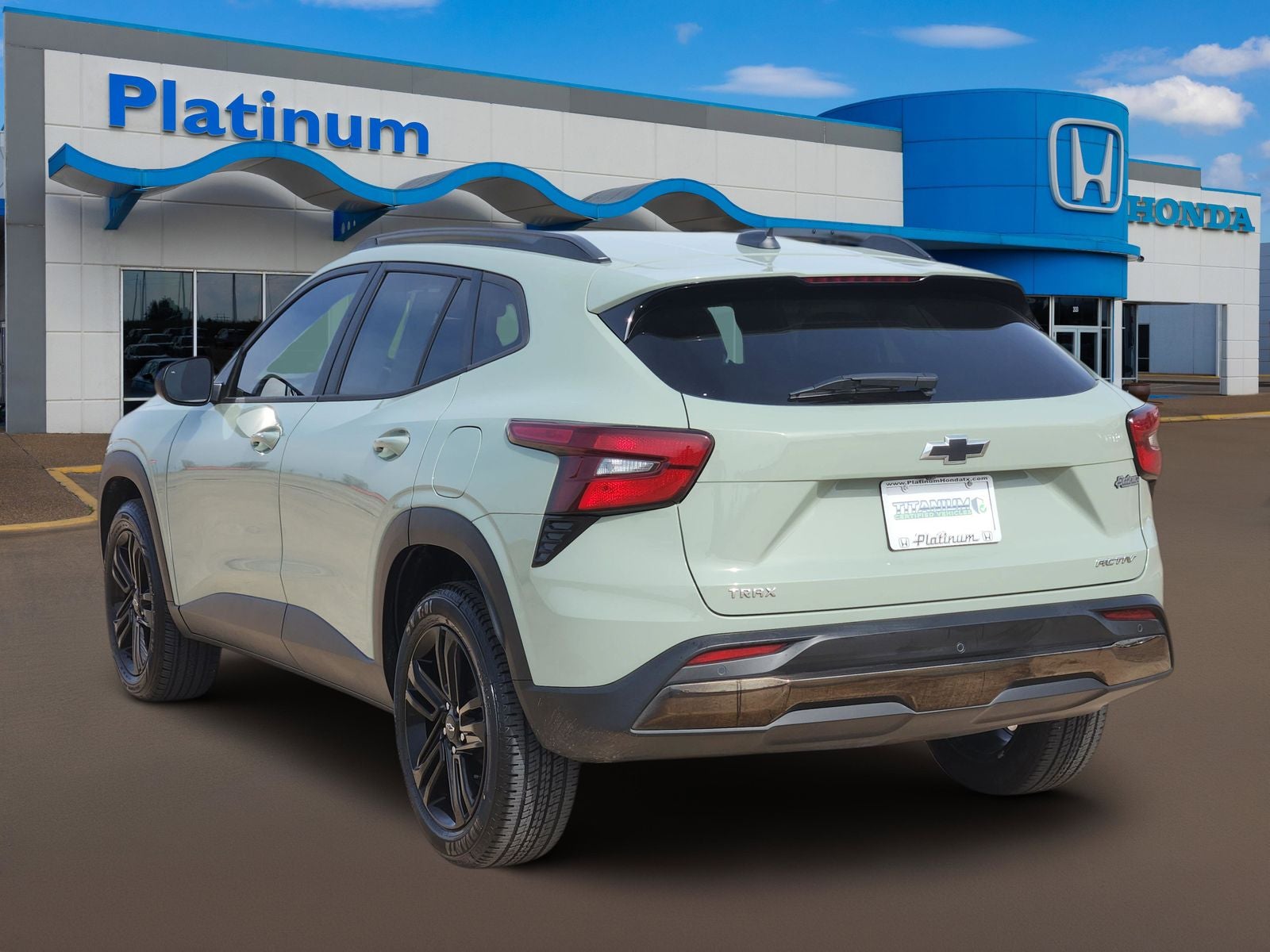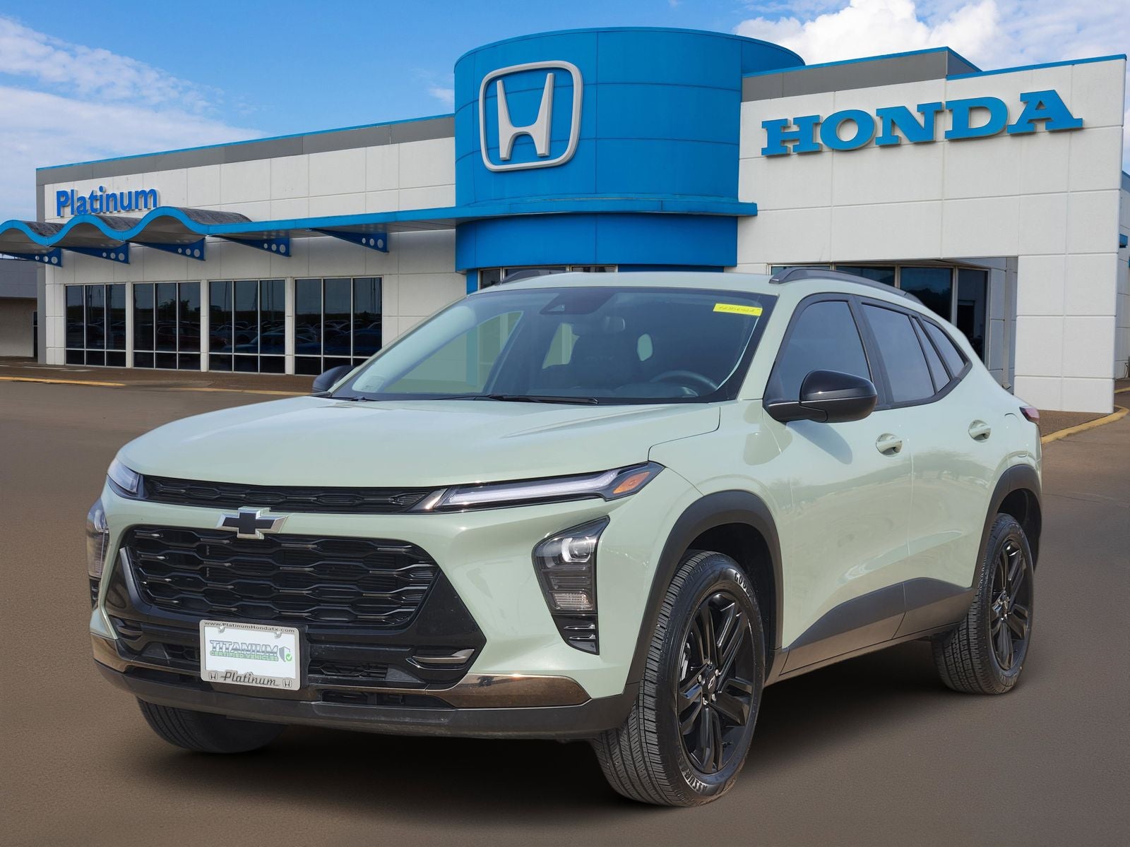 This 2025 Chevrolet Trax ACTIV in Cacti Green comes with the following features: 1.2L Ecotec Turbo DOHC DI w/VVT 6-Speed Automatic FWD Driver Confidence Package (Adaptive Cruise Control, Lane Change Alert with Side Blind Zone Alert, Rear Cross-Traffic Alert, and Rear Park Assist), License Plate Front Mounting Package, Preferred Equipment Group 1SA, 2-Way Adjustable Front Head Restraints, 2-Way Power Driver Lumbar Seat Adjuster, 3.50 Final Drive Axle Ratio, 4-Way Manual Front Passenger Seat Adjuster, 4-Wheel Disc Brakes, 6 Speakers, 6-Speaker Audio System Feature, 8-Way Power Driver Seat Adjuster, ABS brakes, Air Conditioning, Alloy wheels, AM/FM radio: SiriusXM, Auto High-beam Headlights, Automatic temperature control, Brake assist, Bumpers: body-color, Compass, Delay-off headlights, Driver door bin, Driver vanity mirror, Dual front impact airbags, Dual front side impact airbags, Electronic Stability Control, Emergency communication system: OnStar One Essentials, Evotex Seat Trim, Exterior Parking Camera Rear, Front anti-roll bar, Front Bucket Seats, Front Center Armrest, Front reading lights, Front wheel independent suspension, Fully automatic headlights, Heated door mirrors, Heated Driver and Front Passenger Seats, Heated front seats, Heated steering wheel, Highway Safety Kit, Illuminated entry, Jet Black Cargo Liner, Jet Black Cargo Net, Leather steering wheel, Low tire pressure warning, Occupant sensing airbag, Outside temperature display, Overhead airbag, Overhead console, Panic alarm, Passenger door bin, Passenger vanity mirror, Power door mirrors, Power driver seat, Power steering, Power windows, Premium audio system: Chevrolet Infotainment 3, Radio data system, Radio: AM/FM Stereo Audio System, Rear window defroster, Rear window wiper, Remote keyless entry, Security system, SiriusXM Trial Subscription, Speed control, Split folding rear seat, Spoiler, Steering wheel mounted audio controls, Tachometer, Telescoping steering wheel, Tilt steering wheel, Traction control, Trip computer, Variably intermittent wipers, and Wheels: 18 Black-Painted Aluminum. 28/32 City/Highway MPG