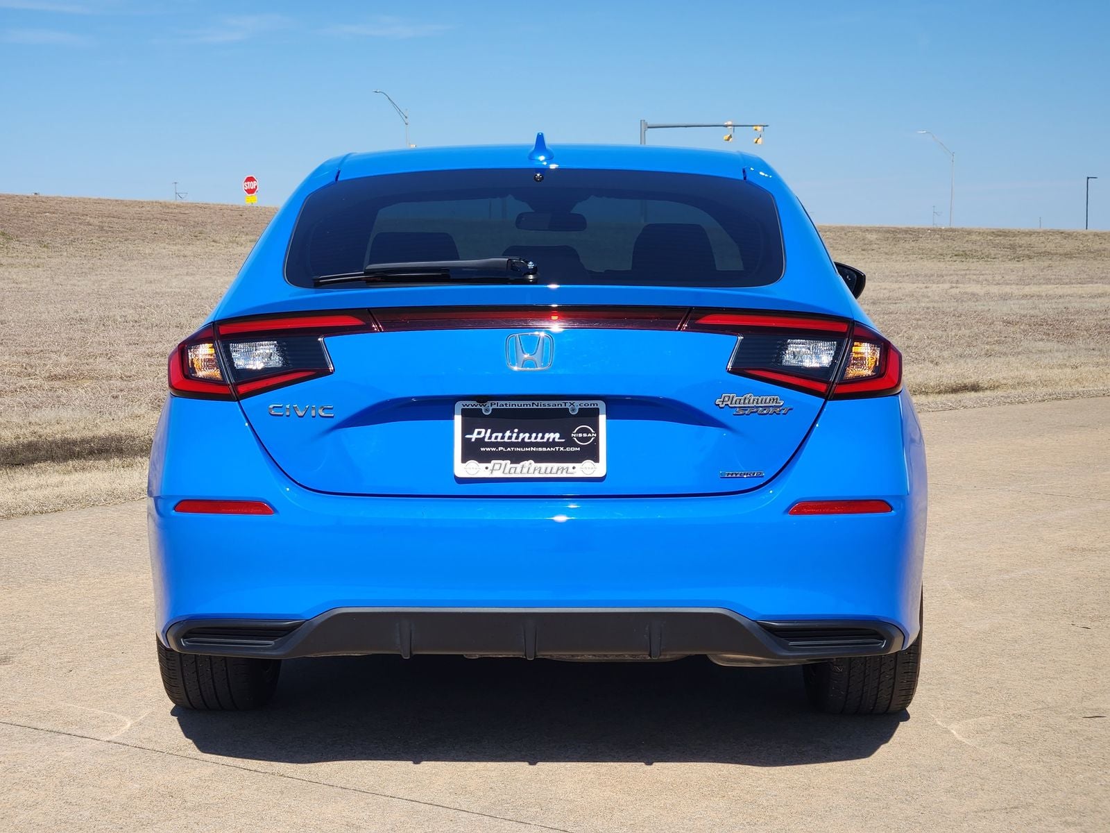 This 2025 Honda Civic Hybrid Sport in Blue comes with the following features: 4-Wheel Disc Brakes, 8 Speakers, ABS brakes, Adaptive Cruise Control: Adaptive Cruise Control (ACC) with Low-Speed Follow, Air Conditioning, Alloy wheels, AM/FM radio, Apple CarPlay/Android Auto, Auto High-beam Headlights, Automatic temperature control, Blind Spot Information (BSI) System warning, Brake assist, Bumpers: body-color, Cloth/Leatherette Seat Trim, Delay-off headlights, Driver door bin, Driver vanity mirror, Dual front impact airbags, Dual front side impact airbags, Electronic Stability Control, Emergency communication system: HondaLink, Exterior Parking Camera Rear, Four wheel independent suspension, Front anti-roll bar, Front Bucket Seats, Front Center Armrest, Front dual zone A/C, Front reading lights, Fully automatic headlights, Heated door mirrors, Heated Front Bucket Seats, Heated front seats, Illuminated entry, Knee airbag, Lane departure: Lane Keeping Assist System (LKAS) active, Leather Shift Knob, Low tire pressure warning, Occupant sensing airbag, Outside temperature display, Overhead airbag, Panic alarm, Passenger door bin, Passenger vanity mirror, Power door mirrors, Power moonroof, Power steering, Power windows, Radio data system, Radio: 180-Watt Audio System, Rear anti-roll bar, Rear seat center armrest, Rear side impact airbag, Rear window defroster, Rear window wiper, Remote keyless entry, Security system, Speed control, Speed-sensing steering, Split folding rear seat, Steering wheel mounted audio controls, Tachometer, Telescoping steering wheel, Tilt steering wheel, Traction control, Trip computer, Variably intermittent wipers, and Wheels: 18 Gloss Black Alloy. 50/45 City/Highway MPG