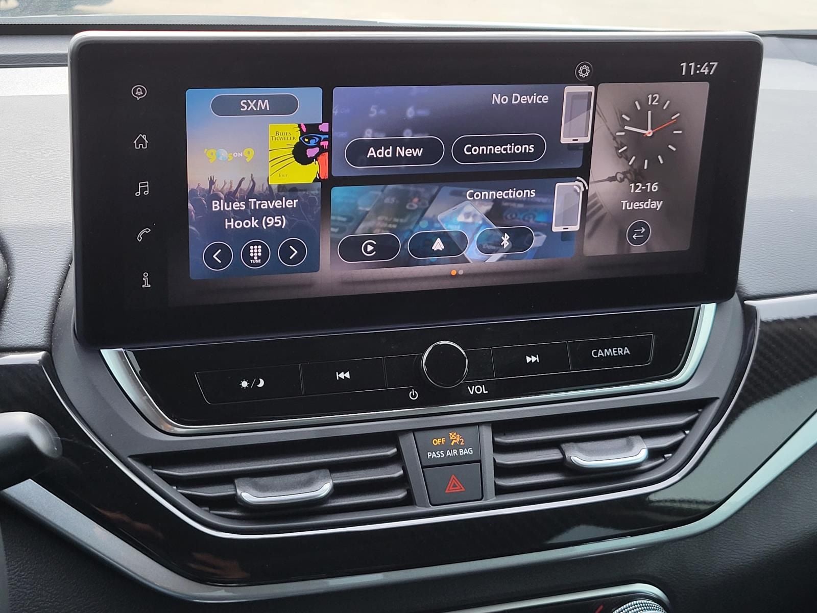 - Radio: AM/FM Audio System -inc: RDS, MP3 and aux-in, 6 speakers, NissanConnect 8" color display w/multi-touch control, Bluetooth® hands-free phone system, streaming audio via Bluetooth®, hands-free text messaging assistant, 2 front illuminated USB ports (1 type-A and 1 type-C) for compatible devices, Apple CarPlay, Android Auto, SiriusXM Radio, Siri Eyes Free, Google Assistant voice recognition and 2 rear illuminated USB ports (1 type-A and 1 type-C)