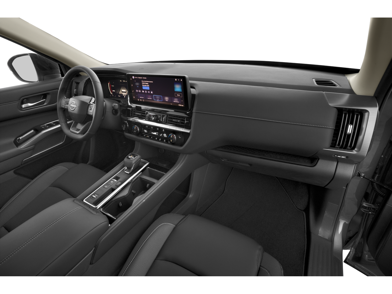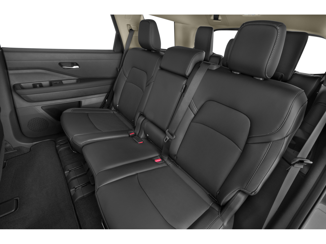 This 2026 Nissan Pathfinder SL in Deep Ocean Blue Pearl comes with the following features: 18 Machined Alloy Wheels, 3rd row seats: bench, 4-Wheel Disc Brakes, 6 Speakers, ABS brakes, Air Conditioning, Alloy wheels, AM/FM radio: SiriusXM w/360L, Auto High-beam Headlights, Auto-dimming Rear-View mirror, Automatic temperature control, Bench Seat Carpeted Floor Mats, Brake assist, Bumpers: body-color, Cross Bars, Delay-off headlights, Driver door bin, Driver vanity mirror, Dual front impact airbags, Dual front side impact airbags, Electronic Stability Control, Emergency communication system: NissanConnect Services, Four wheel independent suspension, Front anti-roll bar, Front Bucket Seats, Front Center Armrest, Front dual zone A/C, Front reading lights, Fully automatic headlights, Garage door transmitter: HomeLink, Heated door mirrors, Heated Front Bucket Seats, Heated front seats, Heated steering wheel, Illuminated entry, Knee airbag, Low tire pressure warning, NissanConnect featuring Apple CarPlay and Android Auto, Occupant sensing airbag, Outside temperature display, Overhead airbag, Overhead console, Panic alarm, Passenger door bin, Passenger vanity mirror, Power door mirrors, Power driver seat, Power Liftgate, Power steering, Power windows, Radio data system, Radio: AM/FM Audio System with NissanConnect, Rear air conditioning, Rear anti-roll bar, Rear reading lights, Rear seat center armrest, Rear side impact airbag, Rear window defroster, Rear window wiper, Reclining 3rd row seat, Remote keyless entry, Security system, Speed control, Speed-sensing steering, Split folding rear seat, Spoiler, Steering wheel mounted audio controls, Tachometer, TailorFit Appointed Seating Surfaces, Telescoping steering wheel, Tilt steering wheel, Traction control, Trip computer, Turn signal indicator mirrors, and Variably intermittent wipers. 21/27 City/Highway MPG