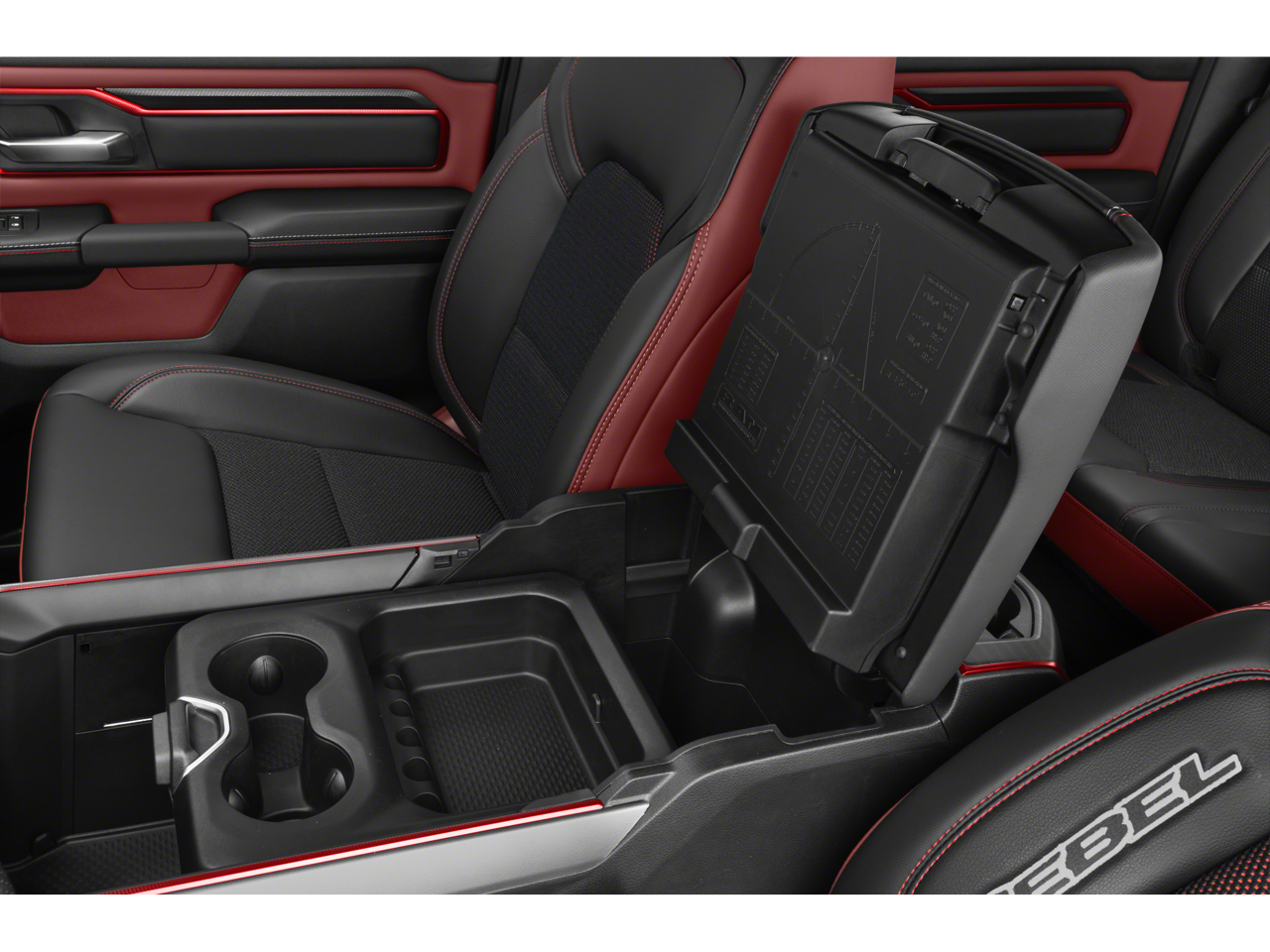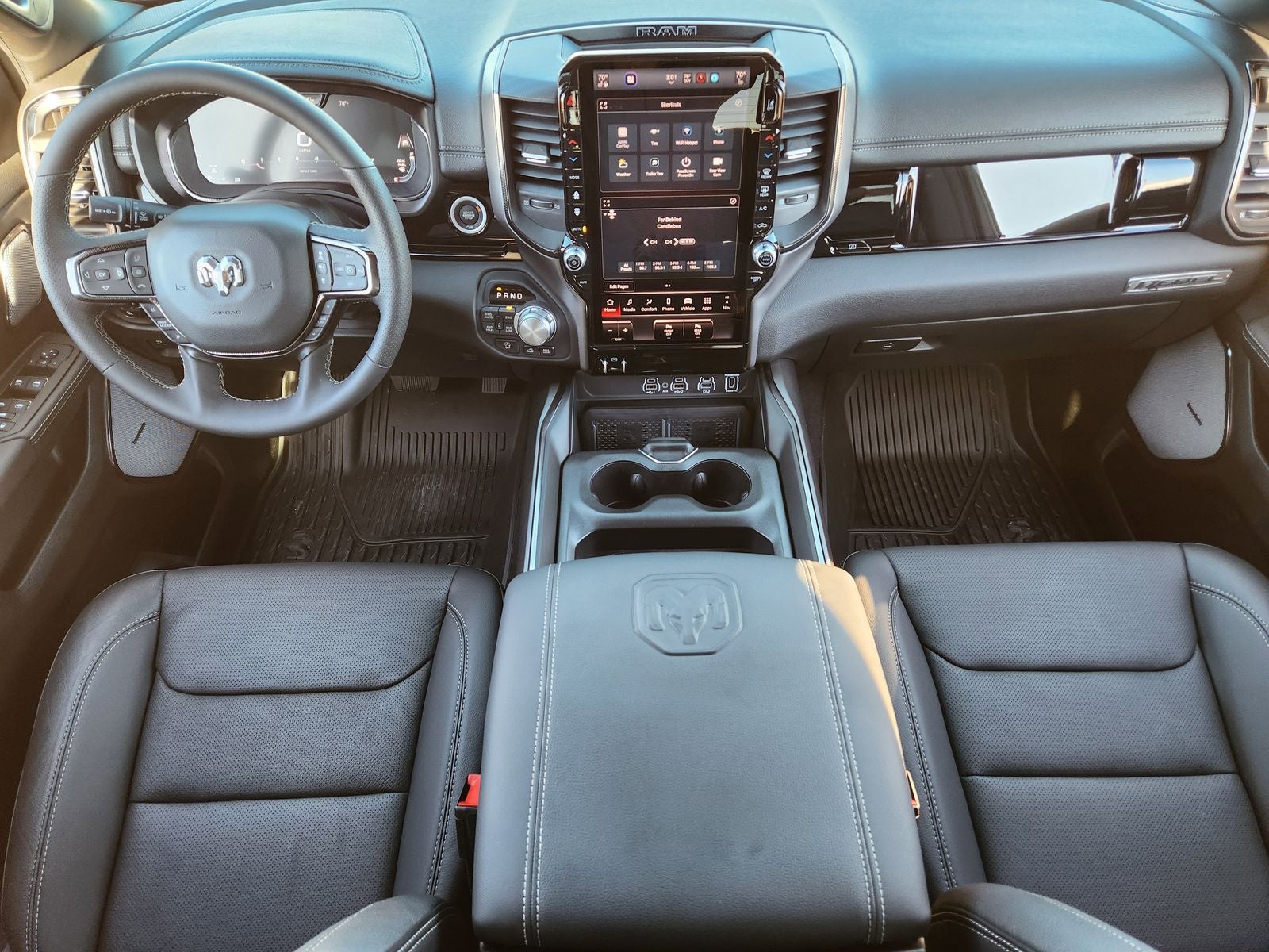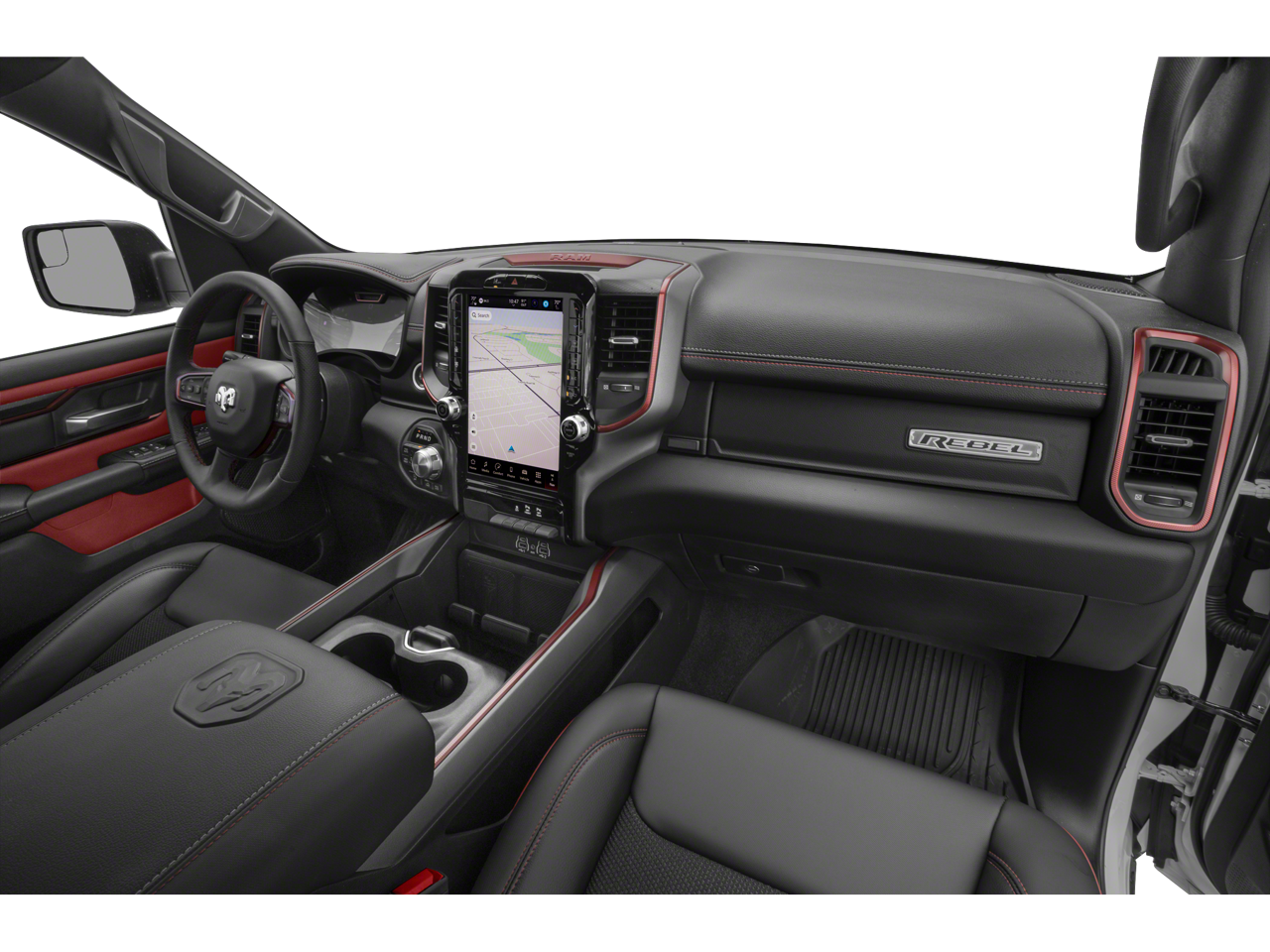 This 2026 Ram 1500 comes nicely equipped with Bed Utility Group (Exterior 115V AC Outlet, MOPAR 4 Adjustable Cargo Tie-Down Hooks, and MOPAR Spray in Bedliner), Quick Order Package 21W Rebel, Rebel Level 2 Equipment Group (115V Auxiliary Rear Power Outlet, 14.4 Touchscreen Display, 2-Door Passive Entry, Front Door Locks, 4G LTE Wi-Fi Hot Spot, Accent Color Door Handles, Accent Color Premium Power Mirrors, Accent Color Tailgate Handle, Apple CarPlay, Auto Power-Folding Mirrors, Auto-Dimming Exterior Driver Mirror, Black Painted Exterior Mirrors Caps, Connected Travel and Traffic Services, Connectivity - US/Canada, Convex Wide-Angle Exterior Mirror Insert, Disassociated Touchscreen Display, Driver Seat Memory, Dual Wireless Charging Pad, Exterior Mirrors Approach Lamps, Exterior Mirrors Courtesy Lamps, Exterior Mirrors with Heating Element, Exterior Mirrors with Memory, Exterior Mirrors with Supplemental Signals, Front Passenger Interactive Display, Global Telematics Box Module, Google Android Auto, GPS Antenna Input, GPS Navigation, Harman/Kardon 19 Speaker Premium Sound, HD Radio, Heated Second Row Seats, Integrated Center Stack Radio, Integrated Voice Command with Bluetooth®, Media Hub with 2 Charge Only USBs, Off-Road Information Pages, Power 2-Way Passenger Lumbar Adjust, Power Adjust 8-Way Front Passenger Seat, Power Adjustable Pedals with Memory, Power Tailgate, Proximity Approach/Departure Lamps, Radio: Uconnect 5 Nav with 14.4 Display, Radio/Driver Seat/Mirrors/Pedals Memory, Rain Sensitive Windshield Wipers, Rear Window Defroster, Security Alarm, SiriusXM Radio Service, SiriusXM with 360L, Smartphone as a Key Capable, and USB Host Flip), 10 Speakers, 3.92 Rear Axle Ratio, 33 Gallon Fuel Tank, 4 Way Front Headrests, 4-Wheel Disc Brakes, ABS brakes, Active Noise Control System, Air Conditioning, Alloy wheels, AM/FM radio: SiriusXM with 360L, Apple CarPlay/Android Auto, Auto High-beam Headlights, Auto-dimming Rear-View mirror, Automatic temperature control, Black Exterior Mirrors, Brake assist, Bucket Seats, Cloth/Vinyl Bucket Seats, Compass, Delay-off headlights, Dome Dual LED Reading Lamp, Driver door bin, Driver vanity mirror, Dual front impact airbags, Dual front side impact airbags, Dual-Pane Panoramic Sunroof, Electronic Stability Control, Front anti-roll bar, Front Bucket Seats, Front Center Armrest w/Storage, Front dual zone A/C, Front fog lights, Front License Plate Bracket, Front reading lights, Front Seat Back Map Pockets, Front wheel independent suspension, Full Length Upgraded Floor Console, Fully automatic headlights, Garage door transmitter, Heated door mirrors, Heated Front Seats, Heated front seats, Heated Steering Wheel, Heated steering wheel, Illuminated entry, Leather steering wheel, Low tire pressure warning, Manual Folding Exterior Mirrors, Navigation System, Occupant sensing airbag, Outside temperature display, Overhead airbag, Overhead console, Panic alarm, ParkView Rear Back-Up Camera, Passenger door bin, Passenger vanity mirror, Power 2-Way Driver Lumbar Adjust, Power Adjust 8-Way Driver Seat, Power door mirrors, Power driver seat, Power steering, Power windows, Radio data system, Radio: Uconnect 5 Navigation with 12.0 Display, Rear 60/40 Folding Seat, Rear anti-roll bar, Rear seat center armrest, Rear step bumper, Remote keyless entry, Speed control, Split folding rear seat, Steering wheel mounted audio controls, Tachometer, Telescoping steering wheel, Tilt steering wheel, Traction control, Trailer Brake Control, Trip computer, Variably intermittent wipers, Voltmeter, and Wheels: 18 x 8.0 Painted Mid-Gloss Black.