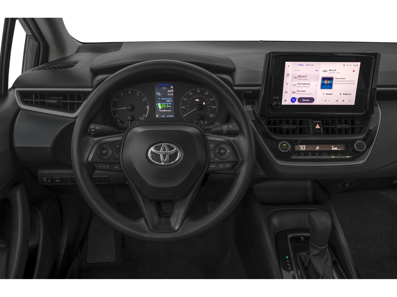 This 2026 Toyota Corolla comes nicely equipped with 4-Wheel Disc Brakes, 6 Speakers, ABS brakes, Air Conditioning, AM/FM radio: SiriusXM, Apple CarPlay/Android Auto, Auto High-beam Headlights, Automatic temperature control, Brake assist, Bumpers: body-color, Delay-off headlights, Driver door bin, Driver vanity mirror, Dual front impact airbags, Dual front side impact airbags, Electronic Stability Control, Emergency communication system: Safety Connect (up to 10-year trial subscription), Exterior Parking Camera Rear, Fabric Seat Trim, Front anti-roll bar, Front Bucket Seats, Front Center Armrest, Front reading lights, Front wheel independent suspension, Fully automatic headlights, Heated door mirrors, Illuminated entry, Knee airbag, Low tire pressure warning, Mudguards, Occupant sensing airbag, Outside temperature display, Overhead airbag, Panic alarm, Passenger door bin, Passenger vanity mirror, Power door mirrors, Power steering, Power windows, Radio data system, Radio: 8 Toyota Audio Multimedia, Rear anti-roll bar, Rear seat center armrest, Rear side impact airbag, Rear window defroster, Remote keyless entry, Speed control, Split folding rear seat, Steering wheel mounted audio controls, Tachometer, Telescoping steering wheel, Tilt steering wheel, Traction control, Trip computer, and Wheels: 16 Steel with Covers.
