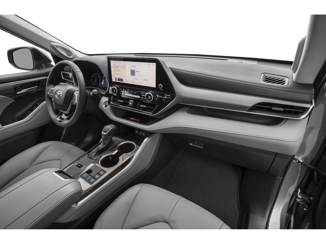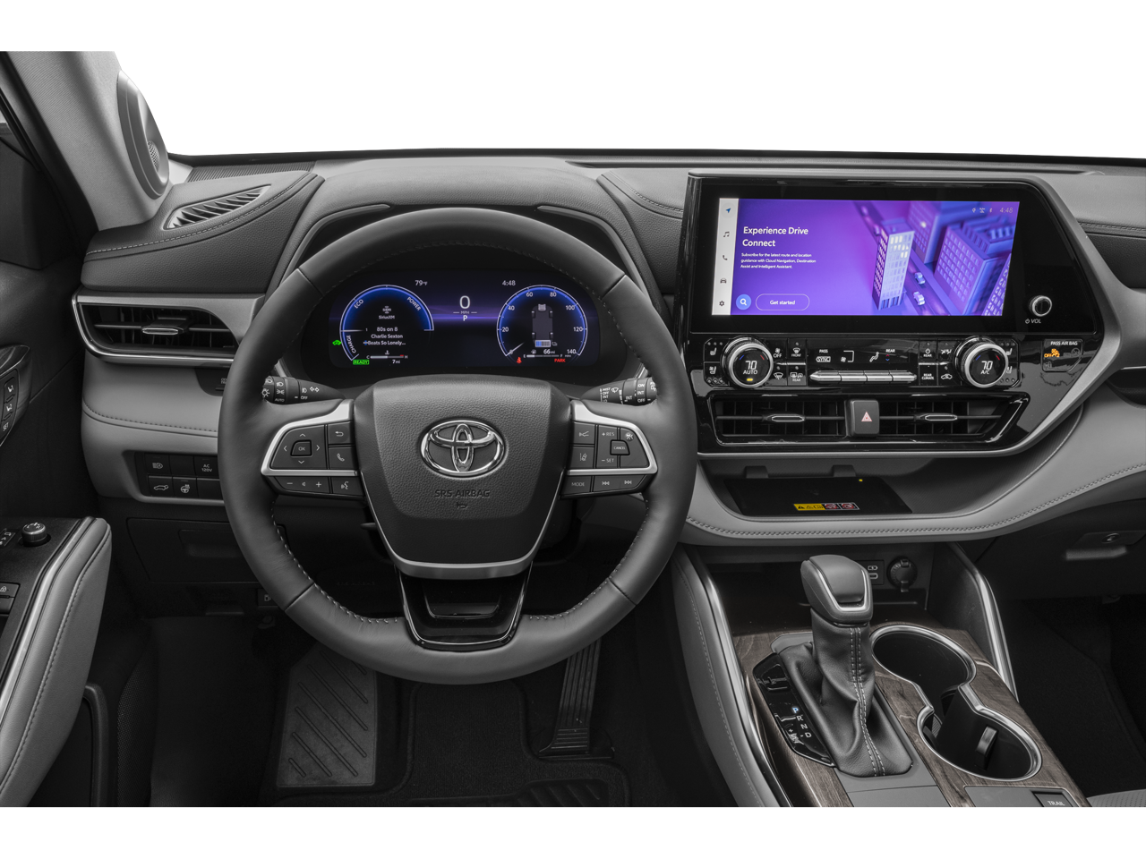 This 2026 Toyota Highlander comes nicely equipped with 2.5L I4 PDI Hybrid DOHC 16V LEV3-SULEV30, AWD, 11 Speakers, 3rd row seats: split-bench, 4-Wheel Disc Brakes, ABS brakes, Air Conditioning, Alloy wheels, AM/FM radio: SiriusXM, Apple CarPlay/Android Auto, Auto High-beam Headlights, Auto-dimming Rear-View mirror, Automatic temperature control, Brake assist, Bumpers: body-color, Carpet Floor Mats/Cargo Mat, Chrome wheels, Delay-off headlights, Driver door bin, Driver vanity mirror, Dual front impact airbags, Dual front side impact airbags, Electronic Stability Control, Emergency communication system: Safety Connect (up to 10-year trial subscription), Exterior Parking Camera Rear, Four wheel independent suspension, Front anti-roll bar, Front Bucket Seats, Front Center Armrest, Front dual zone A/C, Front fog lights, Front reading lights, Fully automatic headlights, Garage door transmitter: HomeLink, Heated and Ventilated Front Bucket Seats, Heated door mirrors, Heated front seats, Heated steering wheel, Illuminated entry, Knee airbag, Leather Seat Trim, Leather Shift Knob, Leather steering wheel, Low tire pressure warning, Memory seat, Navigation system: Drive Connect Cloud Navigation (1-year trial subscription), Occupant sensing airbag, Outside temperature display, Overhead airbag, Overhead console, Panic alarm, Panoramic View Monitor, Passenger door bin, Passenger vanity mirror, Power door mirrors, Power driver seat, Power Liftgate, Power moonroof, Power passenger seat, Power steering, Power windows, Radio: 12.3 Toyota Audio Multimedia with JBL Premium Audio, Rear air conditioning, Rear anti-roll bar, Rear reading lights, Rear window defroster, Rear window wiper, Reclining 3rd row seat, Remote keyless entry, Security system, Speed control, Speed-sensing steering, Split folding rear seat, Spoiler, Steering wheel mounted audio controls, Telescoping steering wheel, Tilt steering wheel, Traction control, Trip computer, Turn signal indicator mirrors, Variably intermittent wipers, Ventilated front seats, and Wheels: 20 Chrome-Finished Alloy.